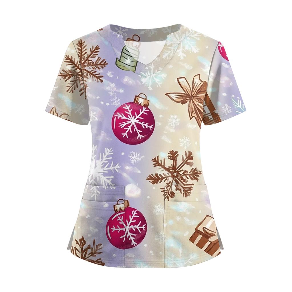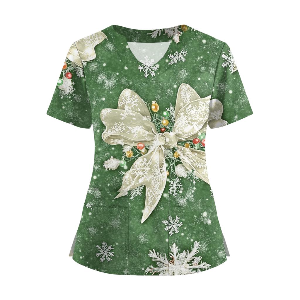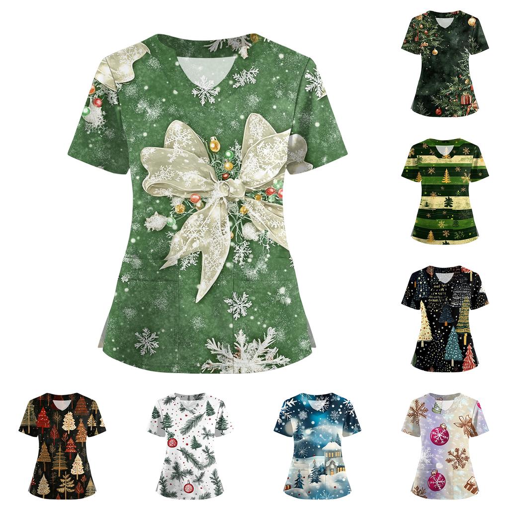 Женская футболка с коротким рукавом, рождественским принтом, V-образным вырезом, на пуговицах сбоку и разрезом