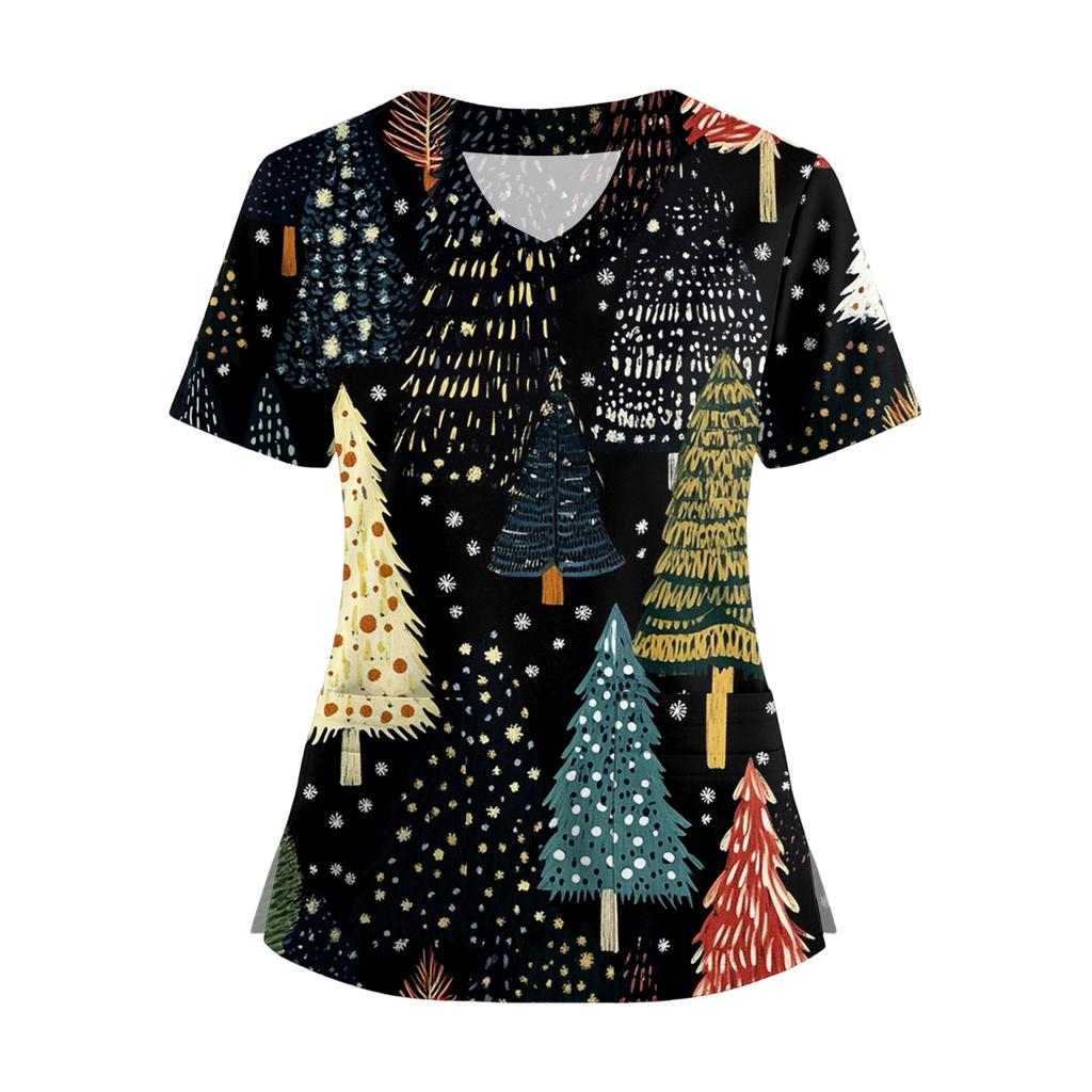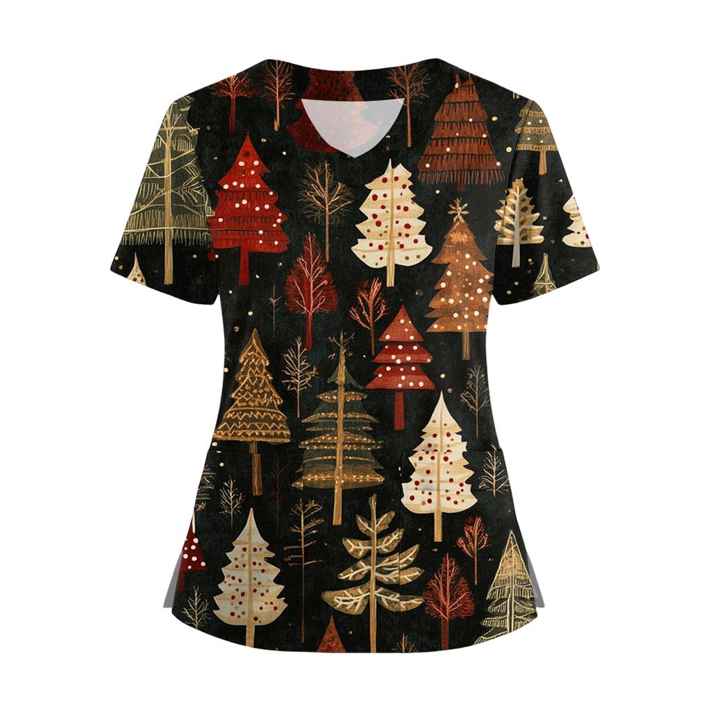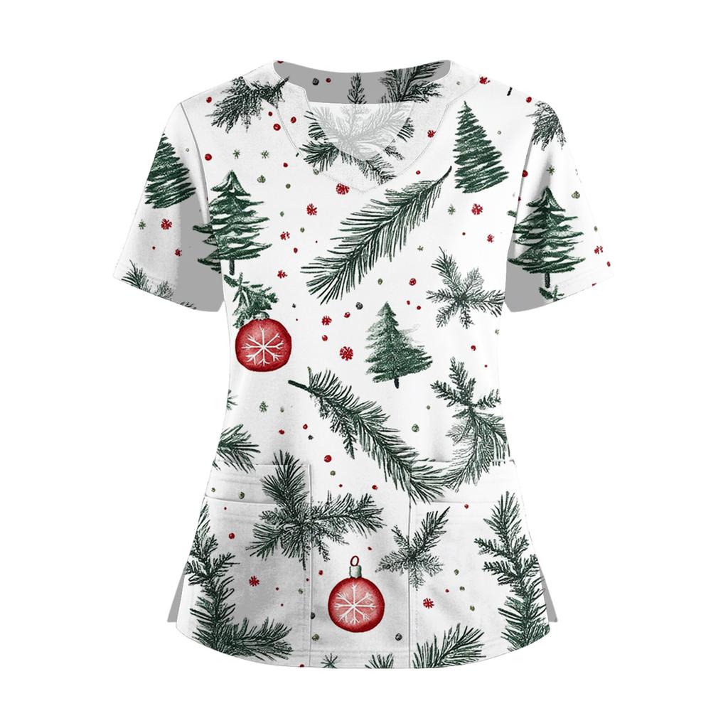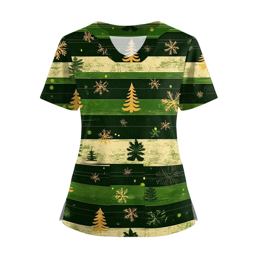 Женская футболка с коротким рукавом, рождественским принтом, V-образным вырезом, на пуговицах сбоку и разрезом