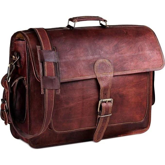 Натуральная винтажная коричневая кожаная сумка через плечо для ноутбука, портфель — купить товар онлайн с бесплатной доставкой по всему миру!
