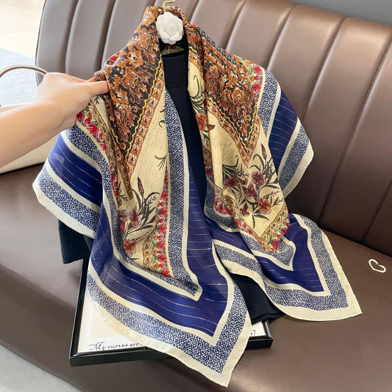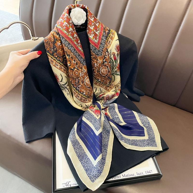 Весенне-осенний шелковый квадратный шарф Женский высококачественный шелковый шарф из тутового шелка в елочку Элегантный универсальный большой платок Тонкий шарф