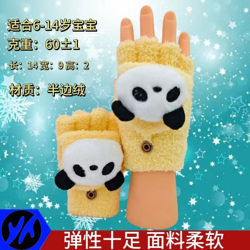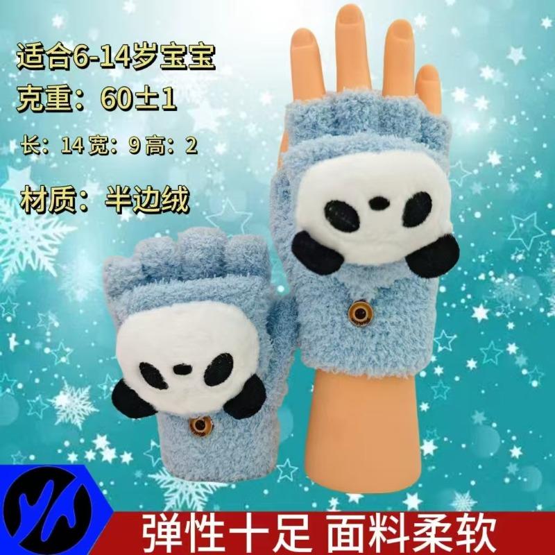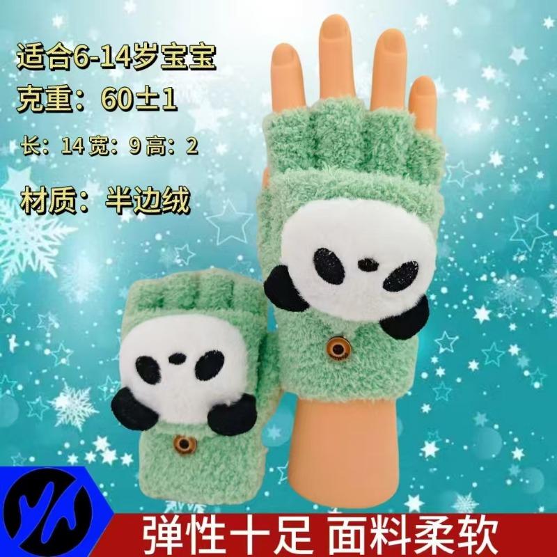 Осень и зима мультяшные панда милые детские перчатки без пальцев для мальчиков и девочек зимние теплые детские пятипалые перчатки