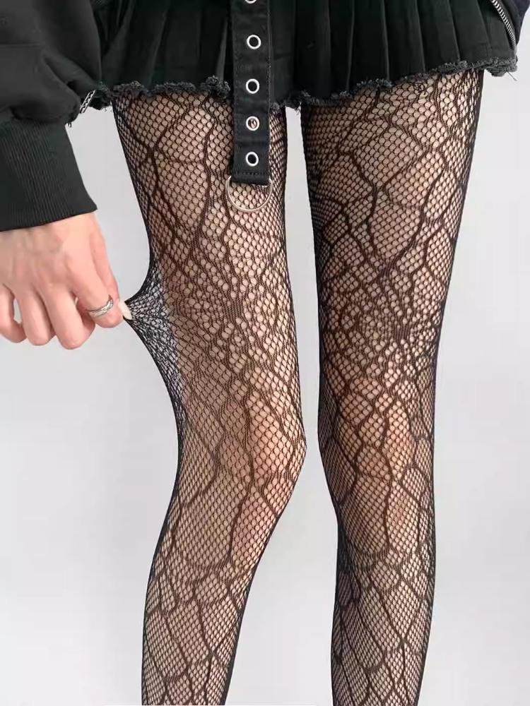 Готический панк-стиль Пикантные чулки-сетка для женщин Летние сексуальные ажурные колготки с паутиной Черные прозрачные колготки