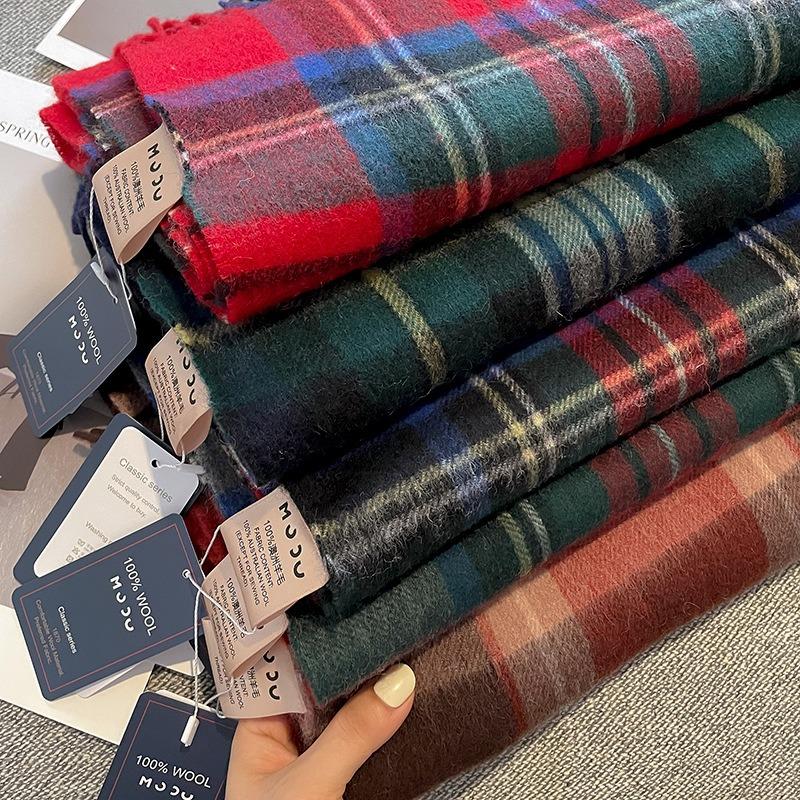 Маленький шерстяной классический клетчатый простой зимний бахромчатый теплый шарф женский шарф студенческий стиль