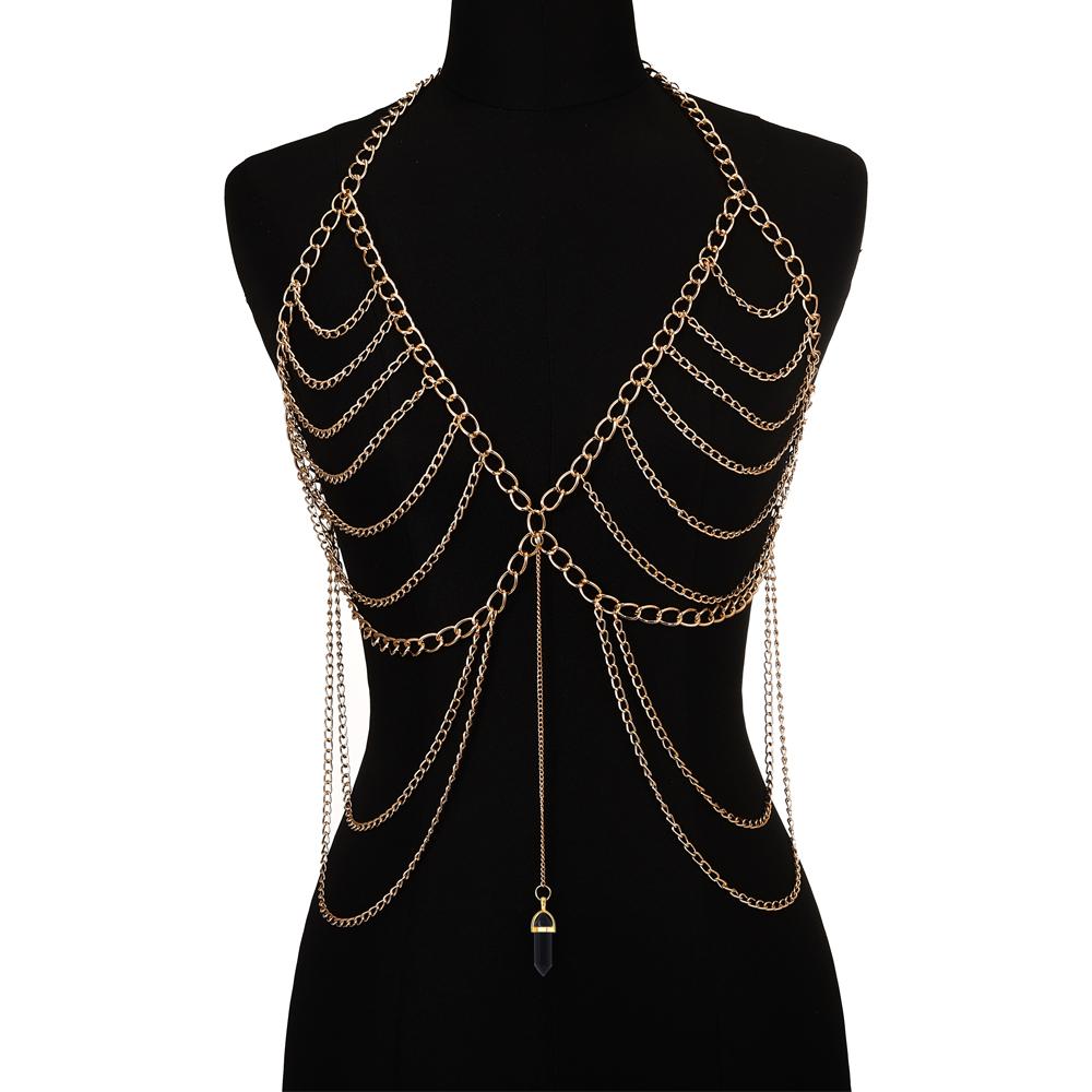 Цепочка для тела для женщин Цепочка с камнем из кварцевого кристалла Металлический топ-портупея для тела Сексуальные аксессуары Ювелирные изделия