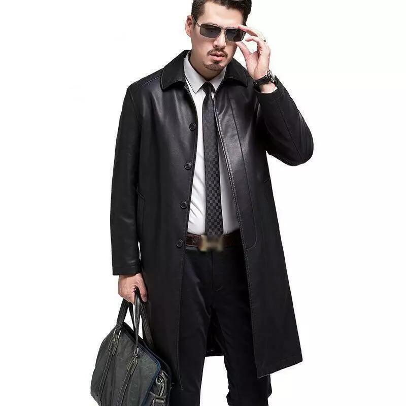 Пальто Черное Ручной работы Деловое Кожаное Тренч Стильное Мужское из Натуральной Овчины — купить товар онлайн с бесплатной доставкой по всему миру!