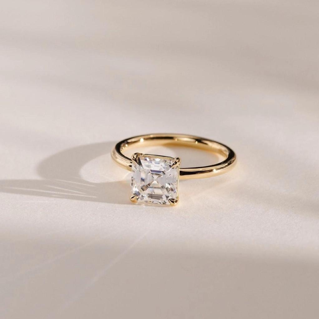 Женское кольцо-солитер с муассанитом огранки «принцесса», позолоченная шинка с квадратным белым камнем, элегантное ювелирное украшение в стиле помолвочного кольца, подарок для нее