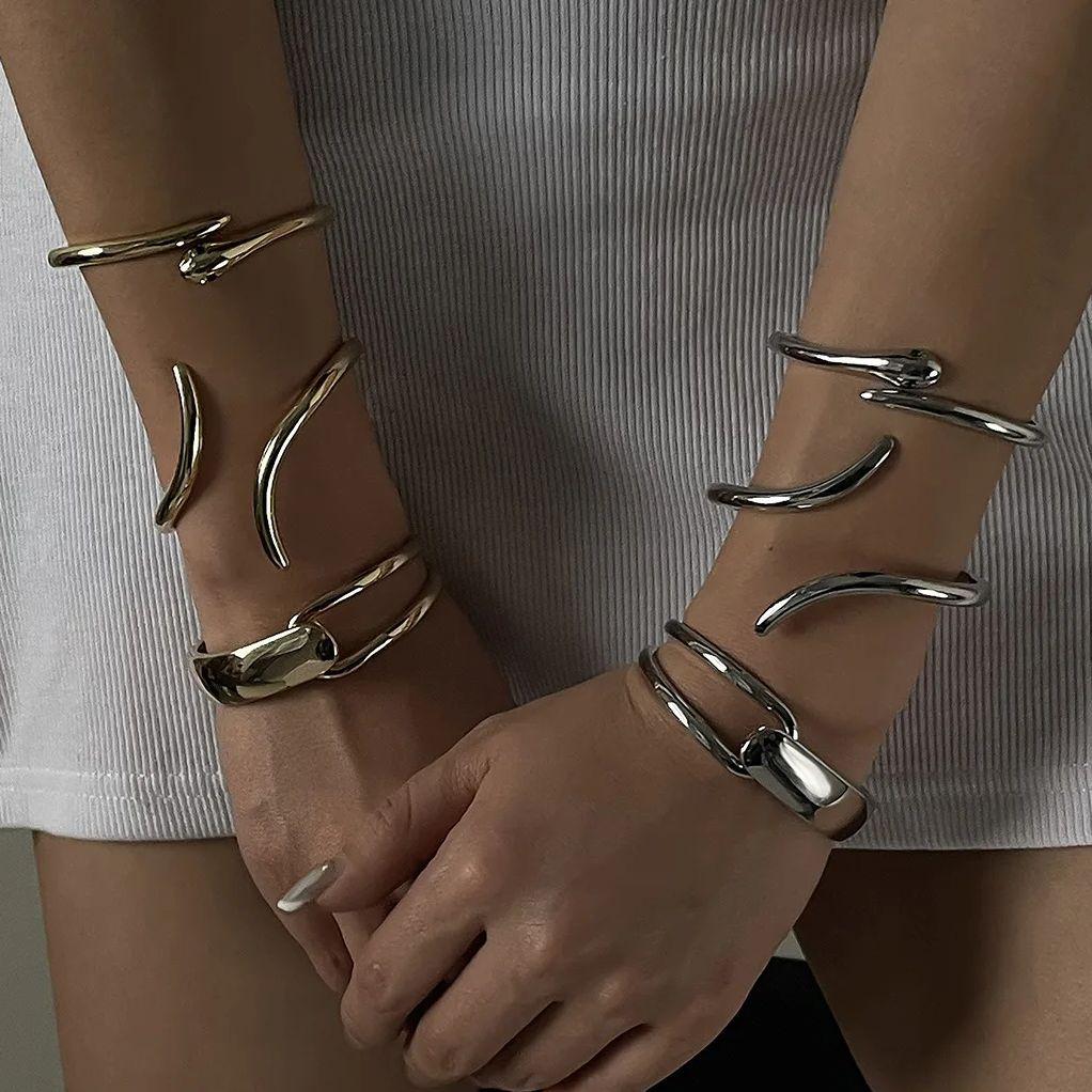 DIEZI Преувеличенные Простые Геометрические Манжеты Пружинные Браслеты Мода Панк Золотой Серебряный Цвет Тяжелый Металл Браслет Для Женщин Мужчин Ювелирные Изделия
