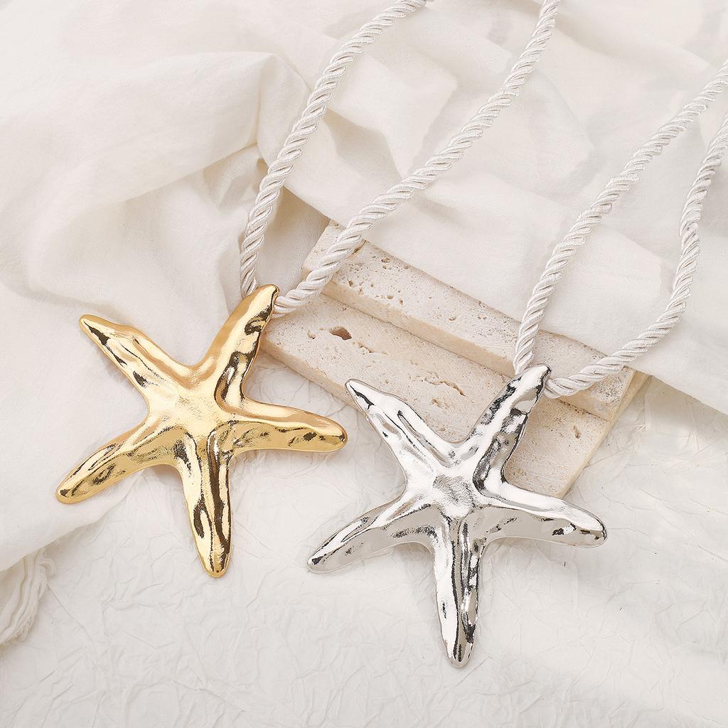 Крупное колье-шнурок с морской звездой, массивное колье с подвеской в виде морской звезды, летние пляжные украшения, праздничный подарок
