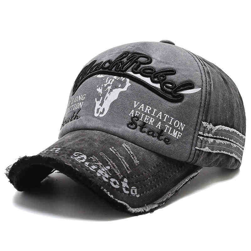 Кепка с головой быка Мужская вышивка Буквы Ретро Потертая бейсболка Старая корейская версия Модная кепка Классическая Универсальная Удобная