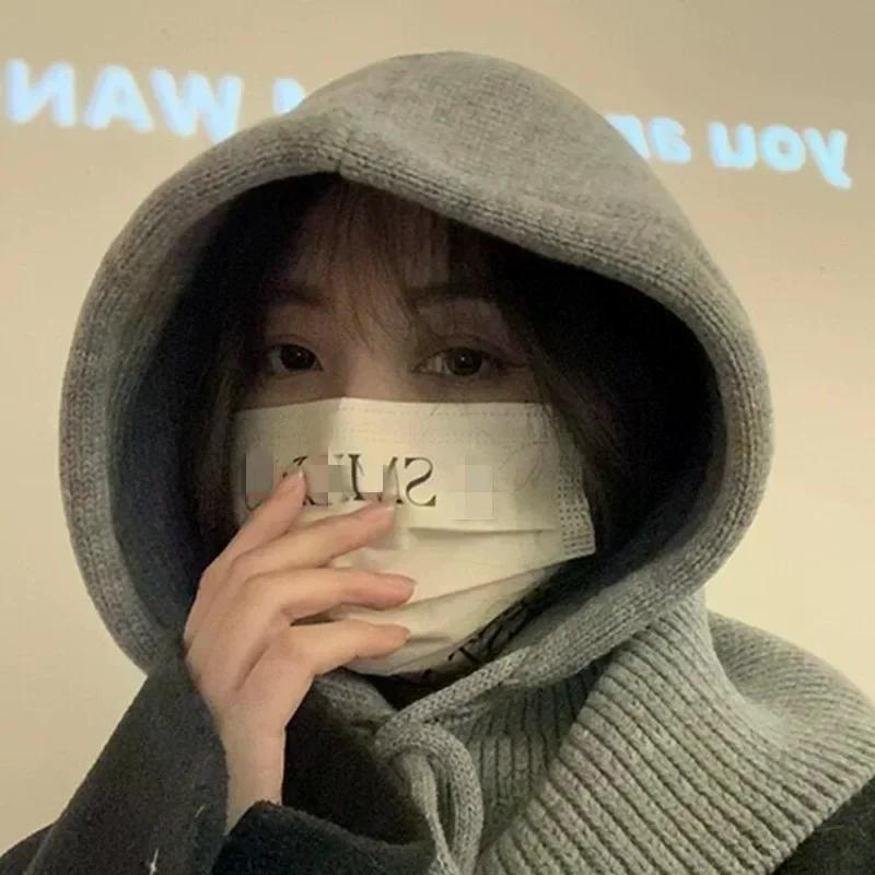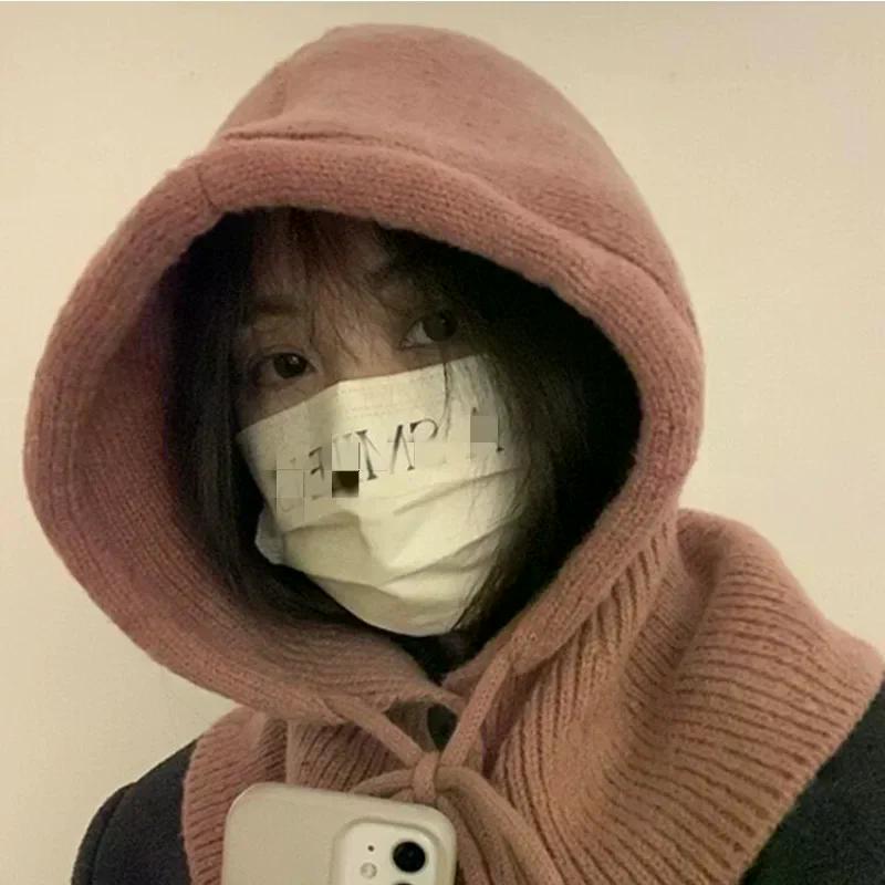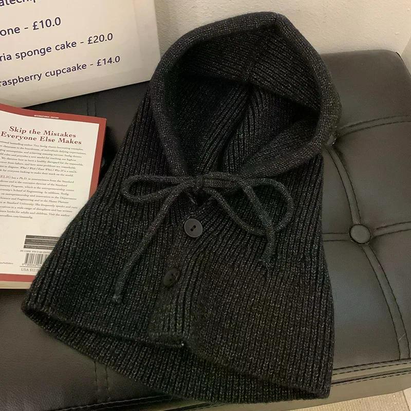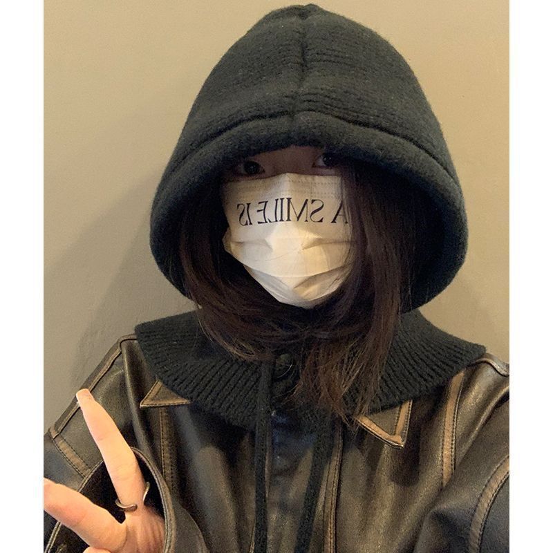 Корейский зимний комплект из шапок и шарфа с пуговицами, шарф-балаклава, теплый комплект с шеей, женский вязаный шерстяной пуловер, шапка, готический Y2k