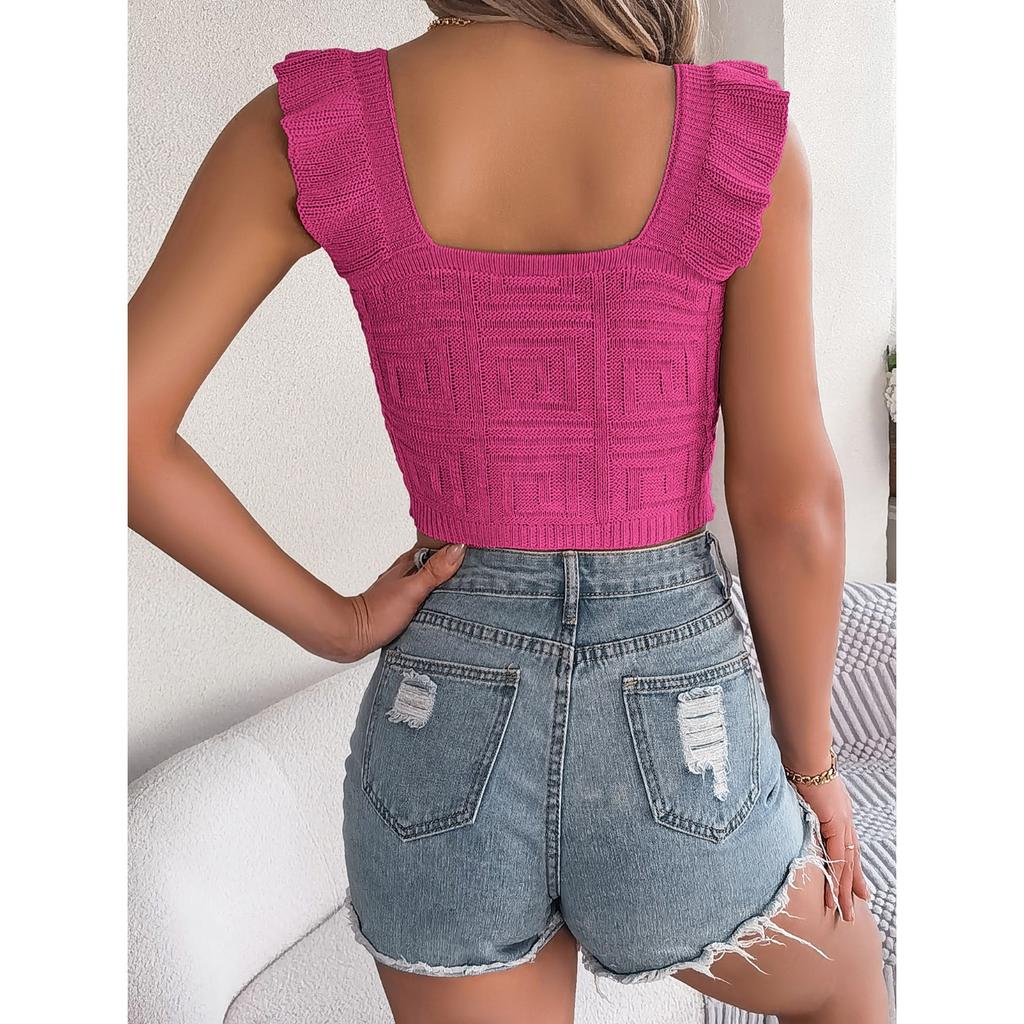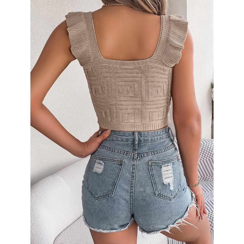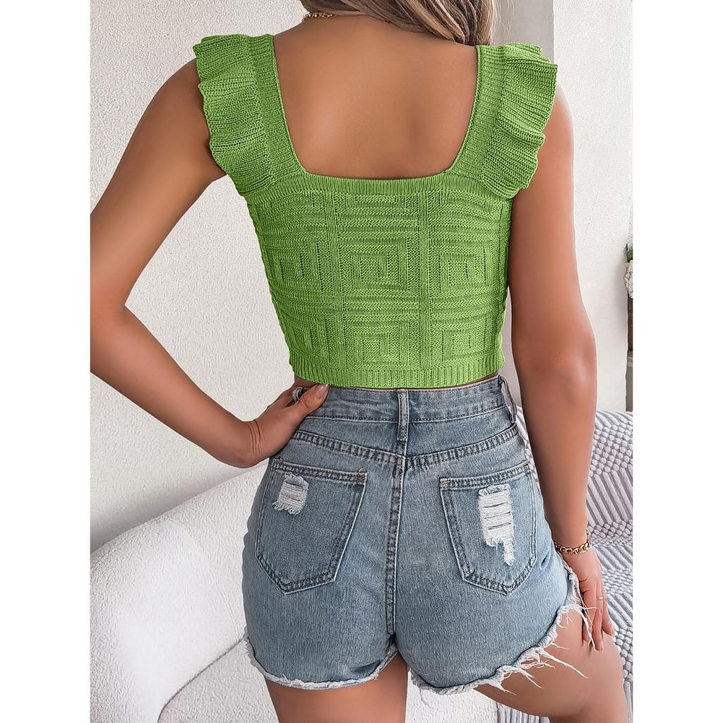 HNXC Весна Лето Однотонный Квадратный Вырез Черная Отделка Ушками Без рукавов Вязаный Свитер Кроп-топ Женская Одежда