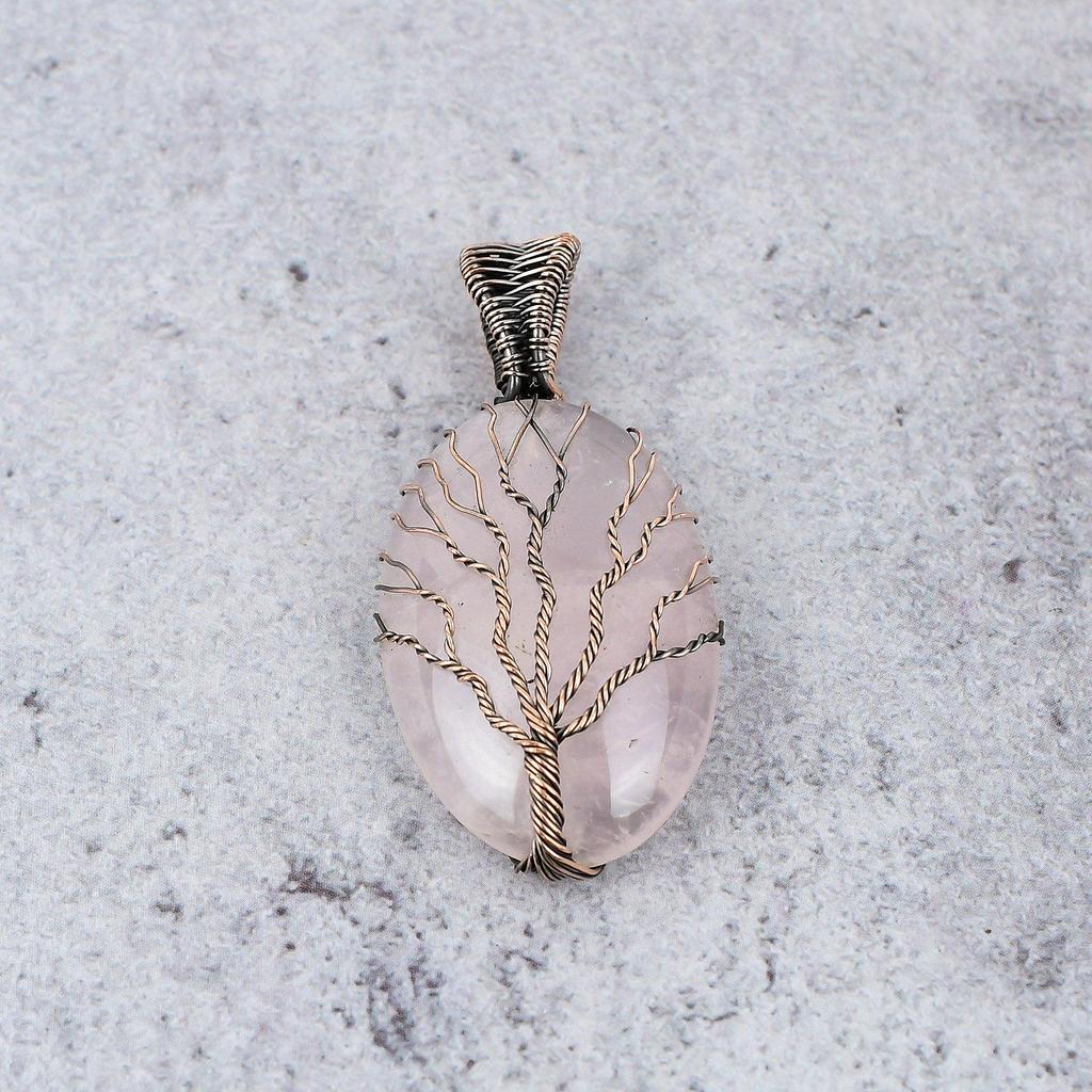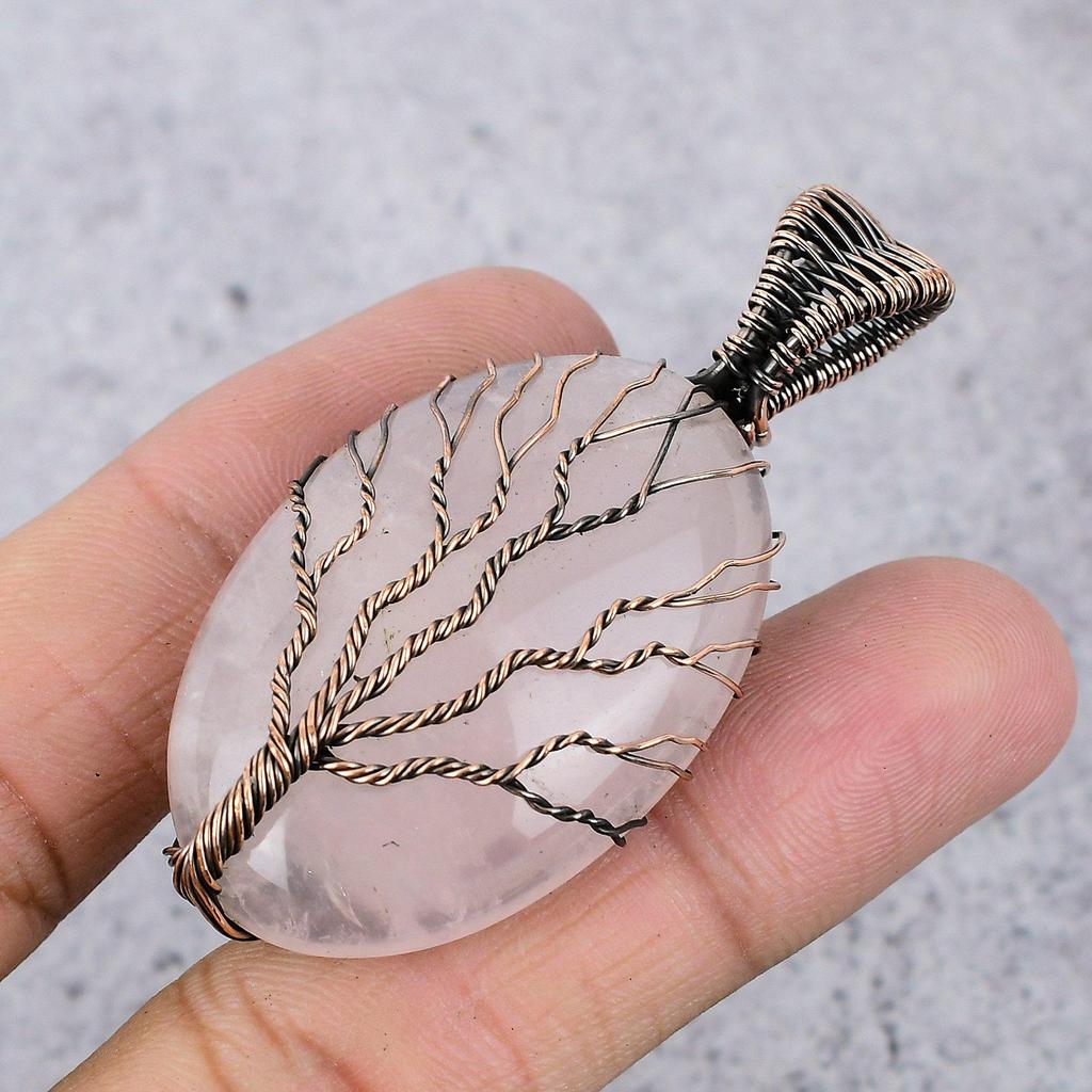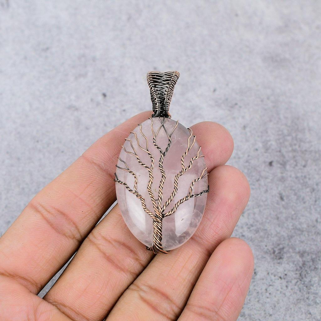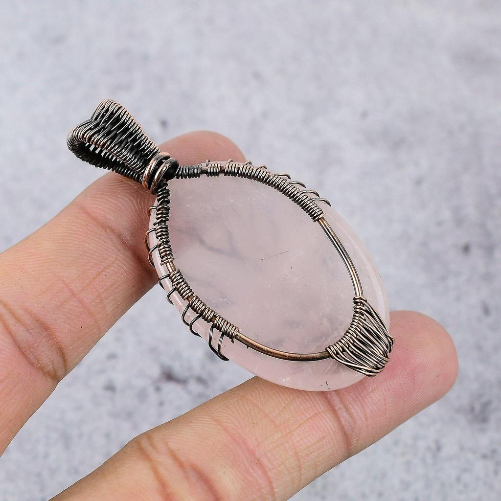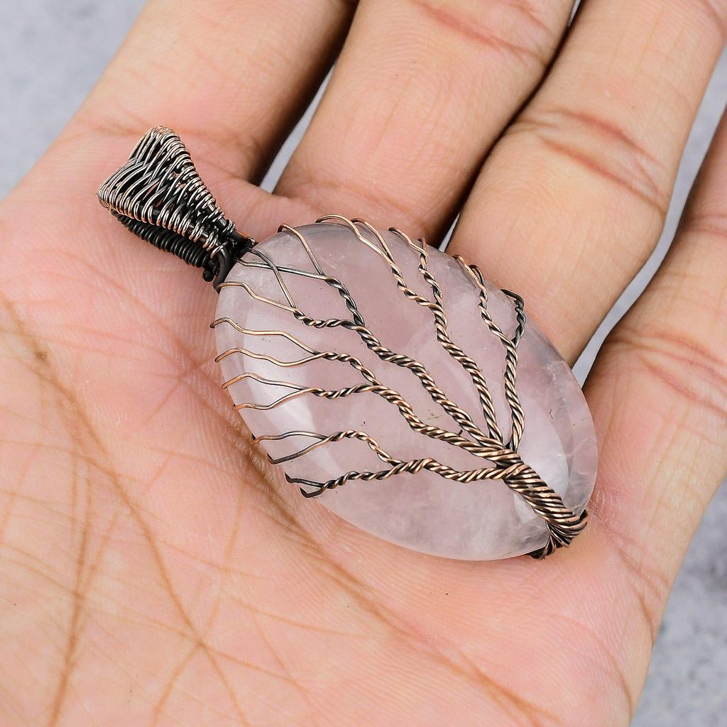 Украшения из розового кварца, кулон, обернутый медной проволокой 999 пробы, украшения из драгоценных камней ручной работы, подарки для жены, совершенно новый кулон