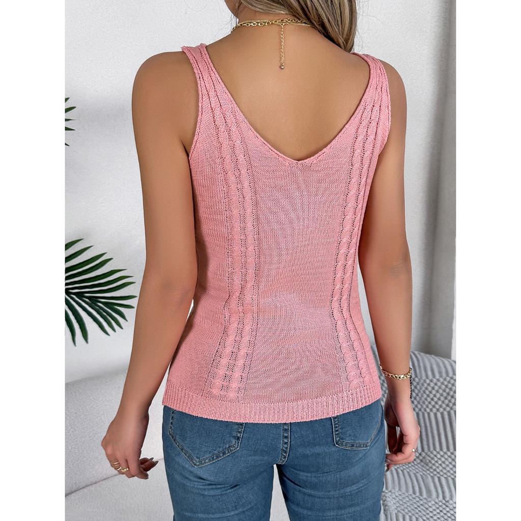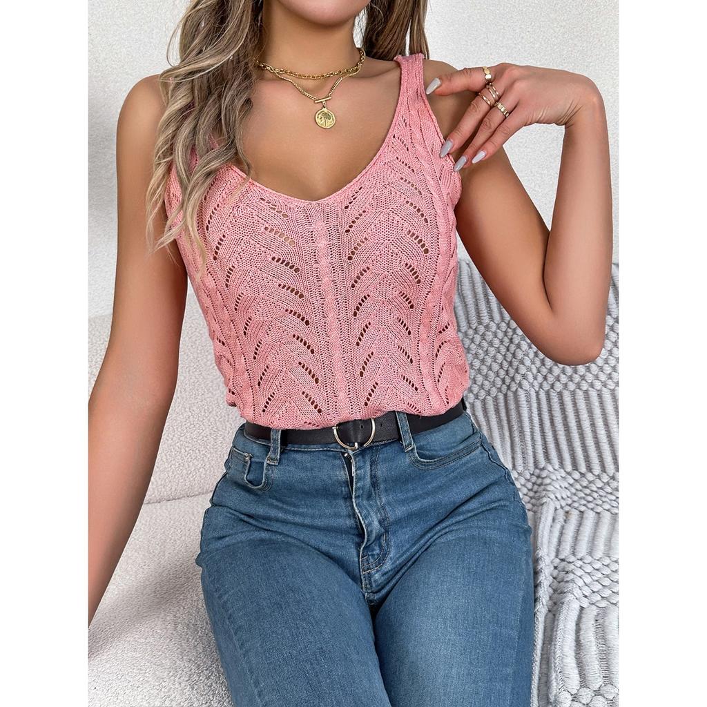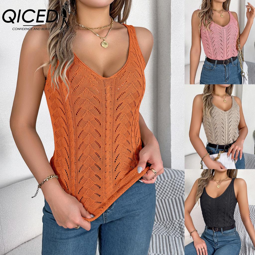 QICED Весна Лето Однотонный V-образный вырез Вырез Без рукавов Вязаный свитер Жилет для отпуска Женская одежда
