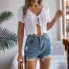QICED Летний вязаный кардиган с вырезами на шнуровке, с короткими рукавами, для отпуска, защита от солнца, женская одежда