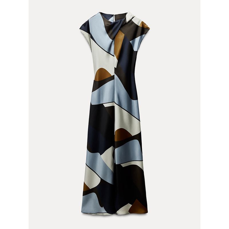Za2025 Spring New Women's Clothing Fashion Elegant Slim Looking Silk Satin Texture Print Midi Skirt Dress 2479124