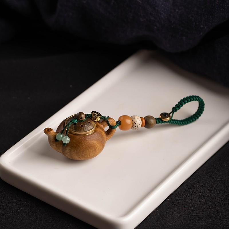 Брелок в виде горшка с ручкой из зеленого сандалового дерева