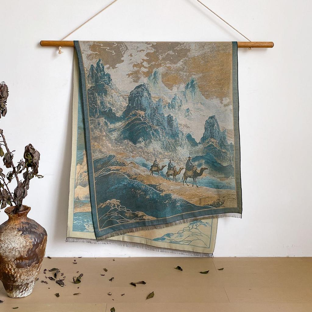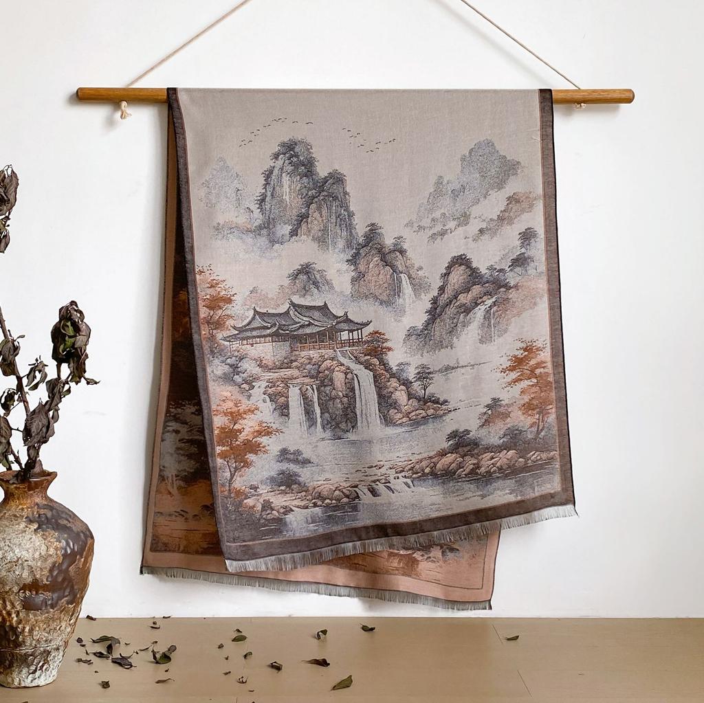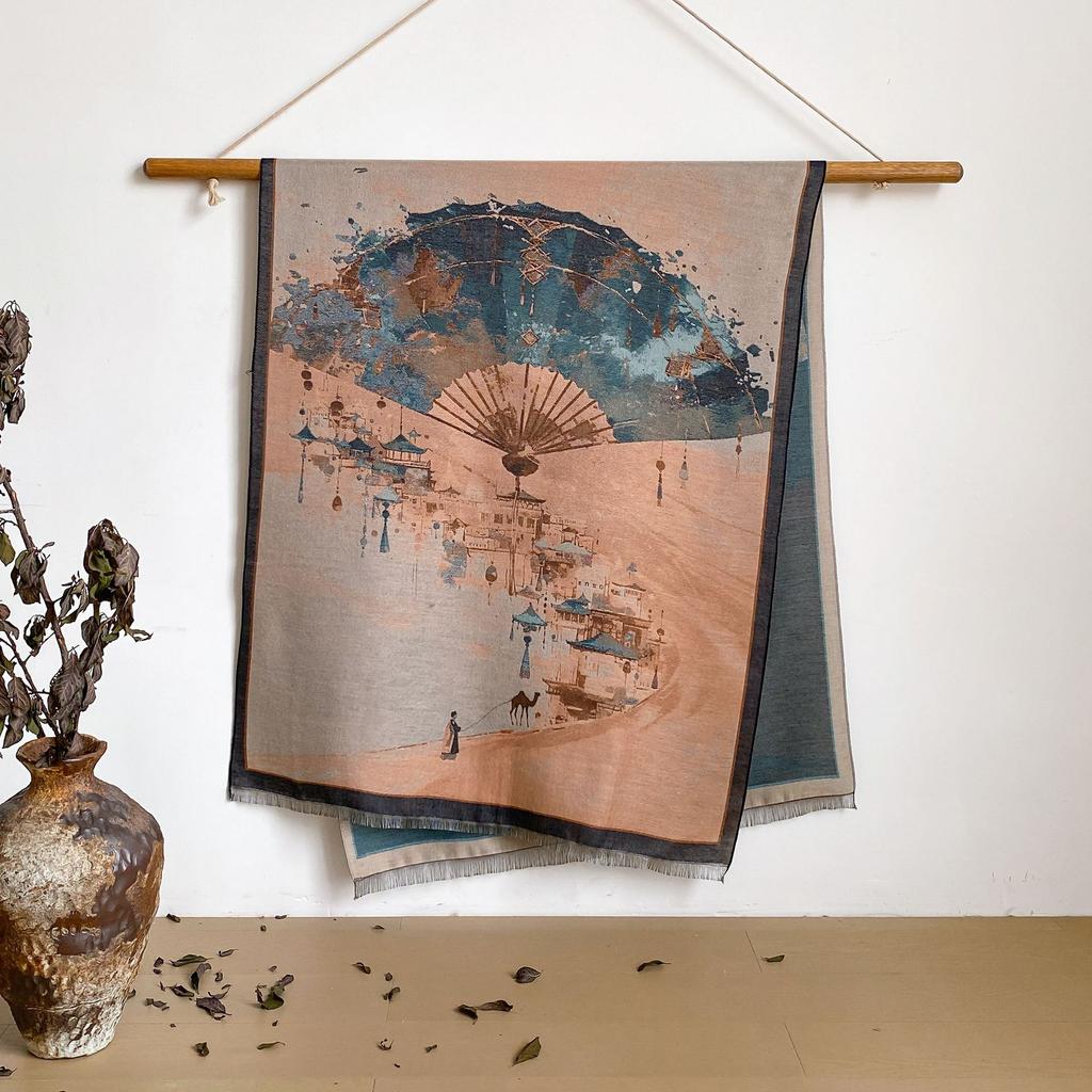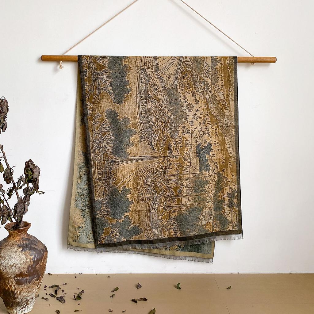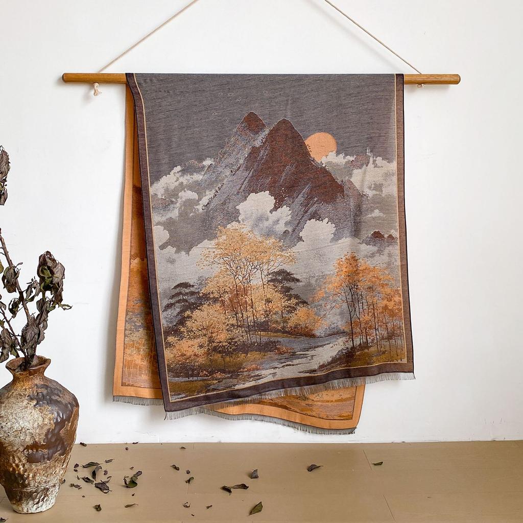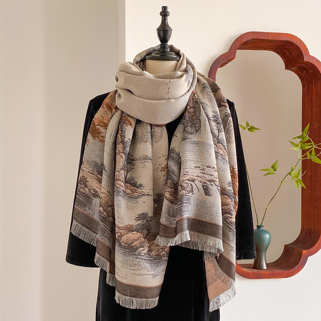 Пейзаж Пейзаж Масляная Живопись Осень И Зима Длинный Тонкий Шарф Национального Стиля Женский Шарф-Шаль из Имитации Кашемира для Кондиционированного Помещения