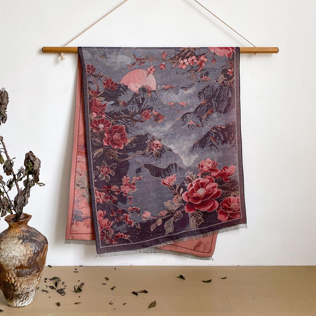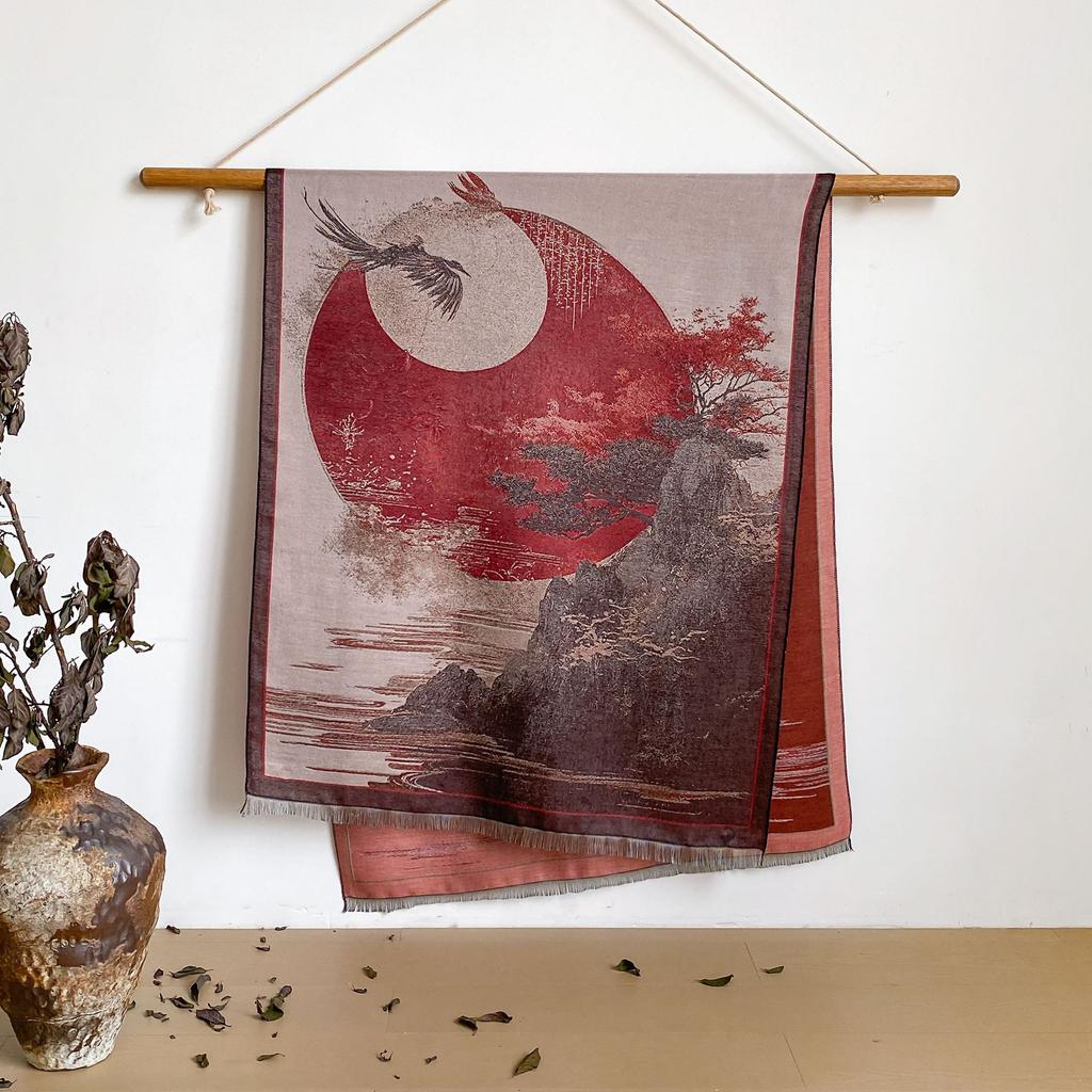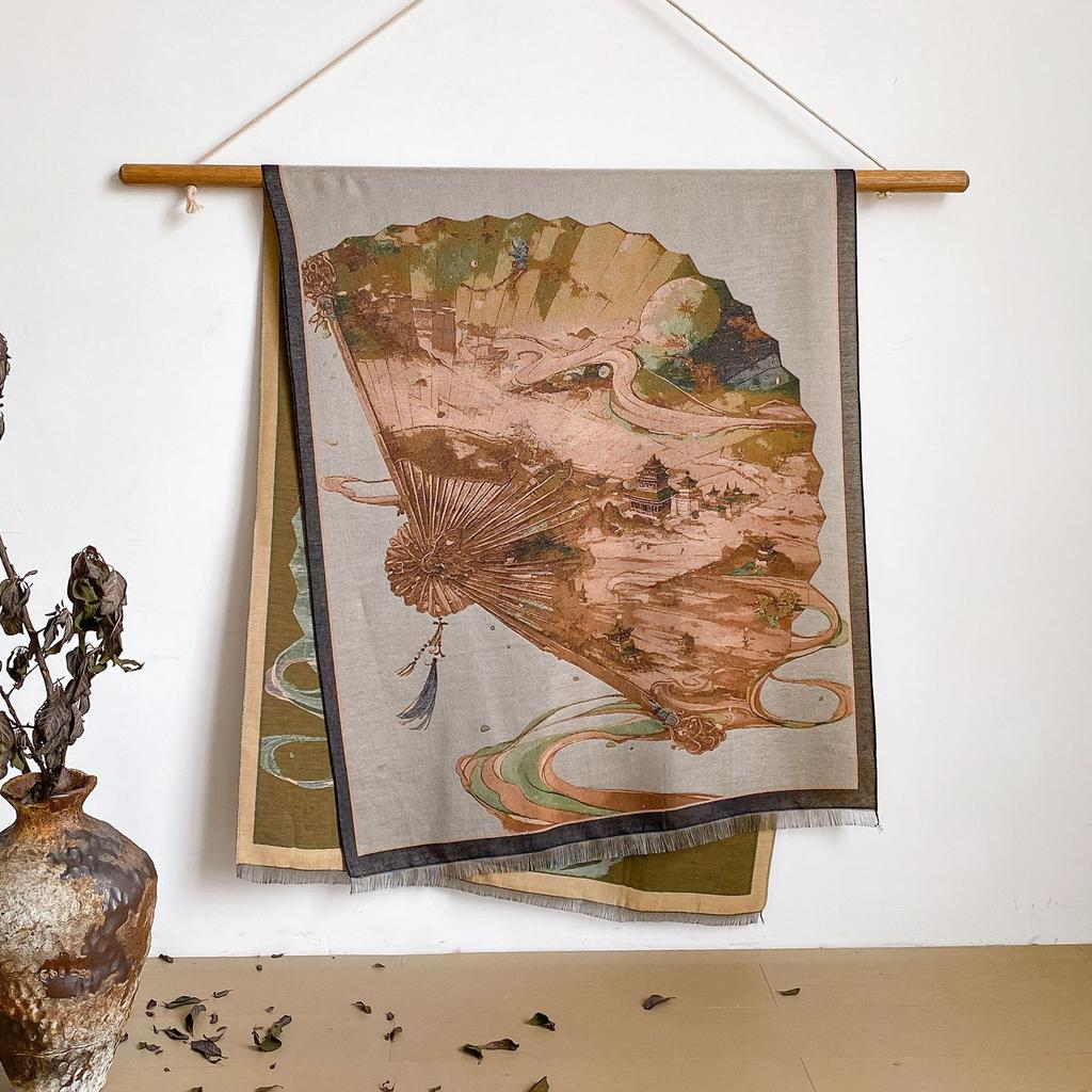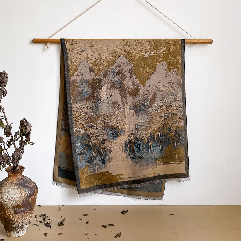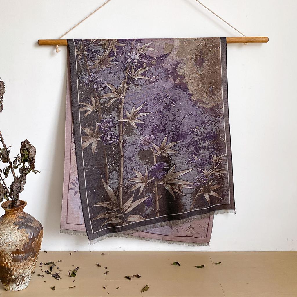 Пейзаж Пейзаж Масляная Живопись Осень И Зима Длинный Тонкий Шарф Национального Стиля Женский Шарф-Шаль из Имитации Кашемира для Кондиционированного Помещения
