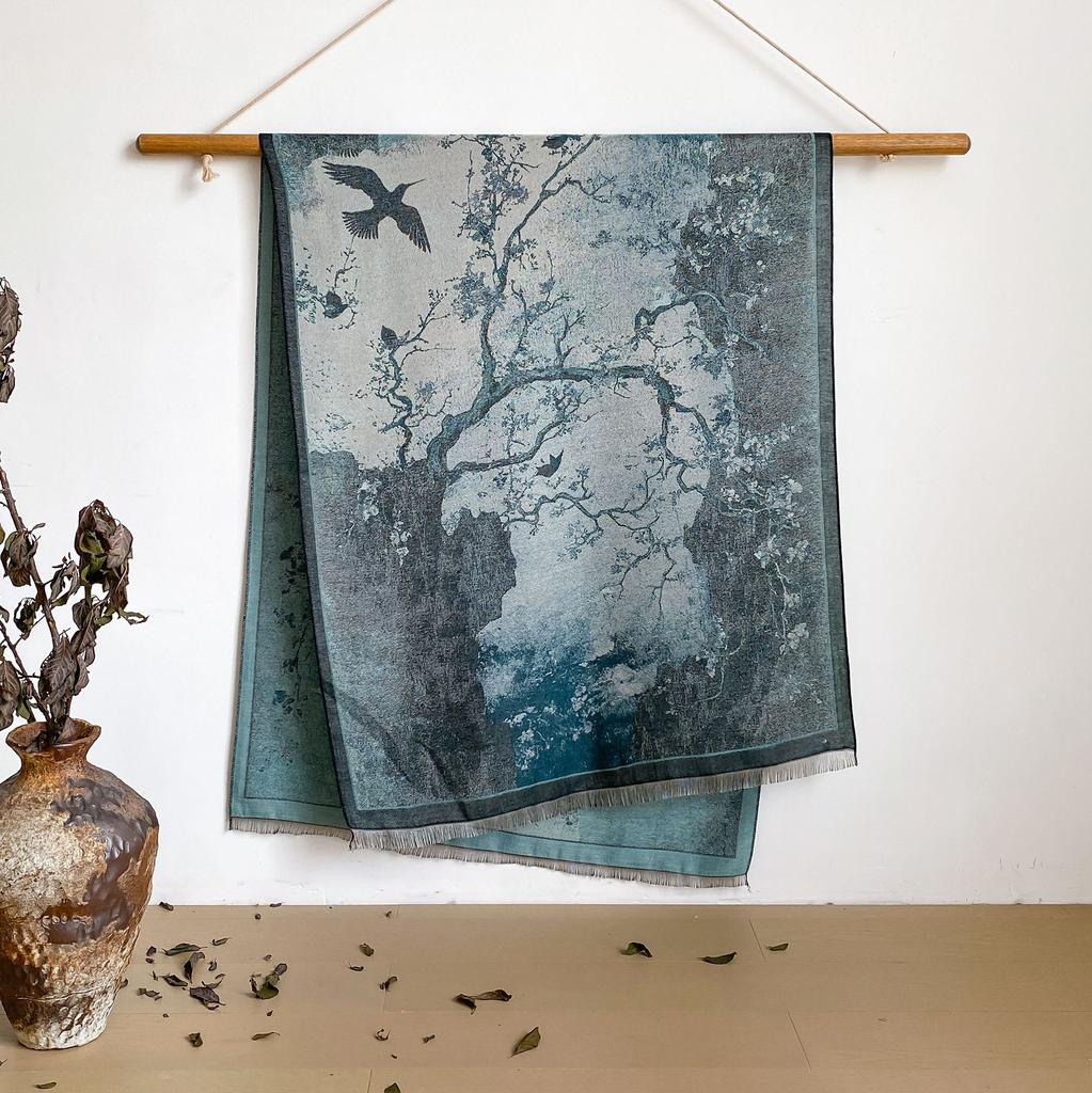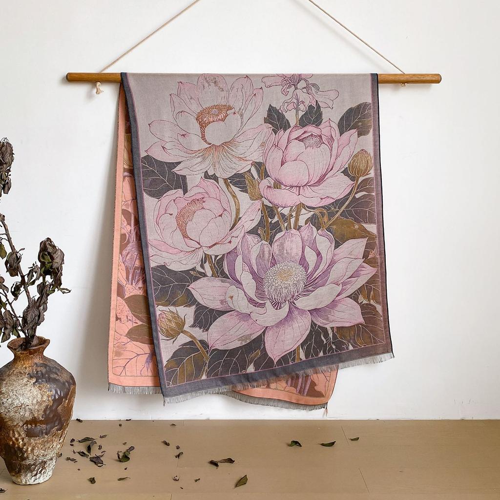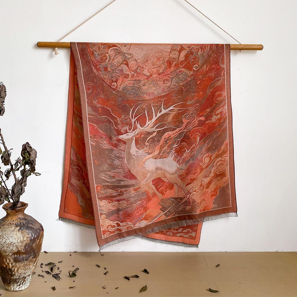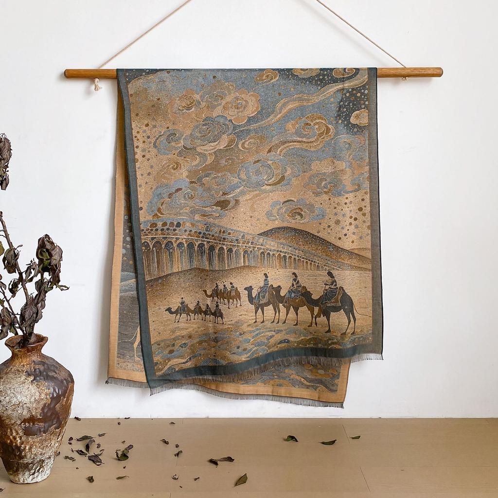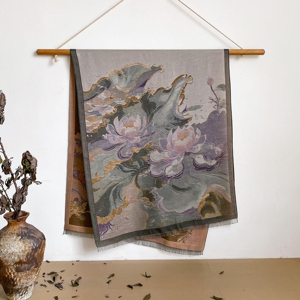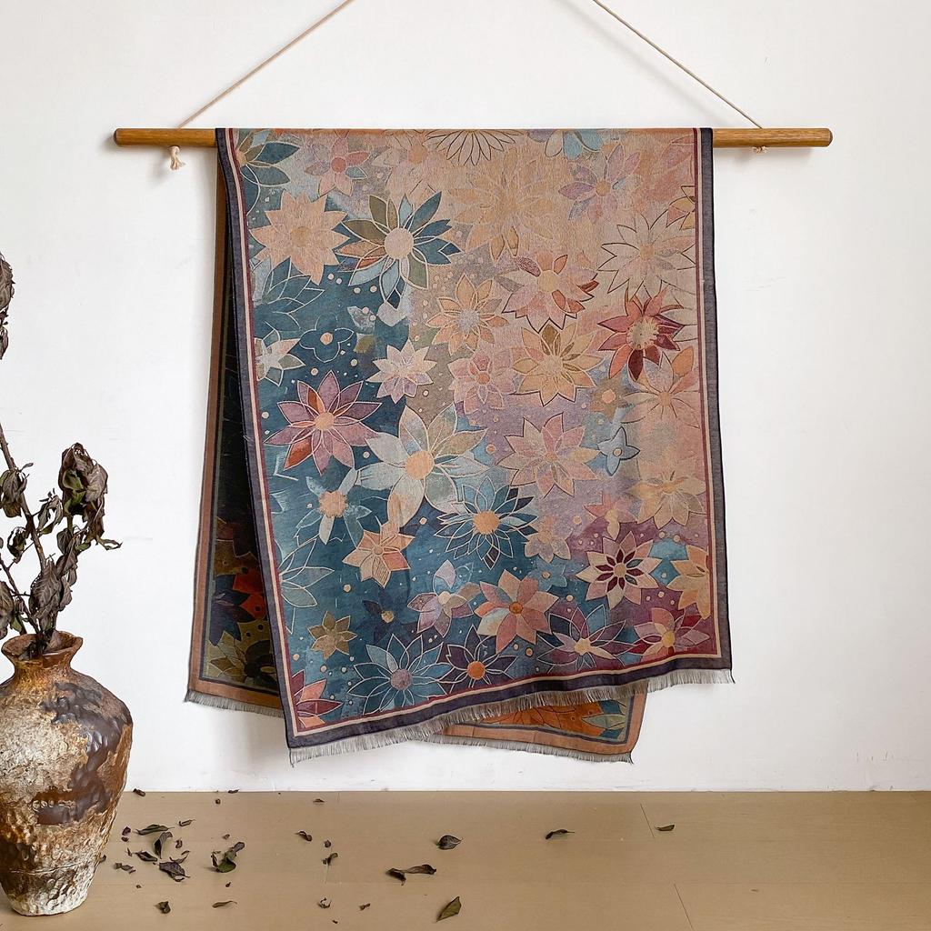 Пейзаж Пейзаж Масляная Живопись Осень И Зима Длинный Тонкий Шарф Национального Стиля Женский Шарф-Шаль из Имитации Кашемира для Кондиционированного Помещения