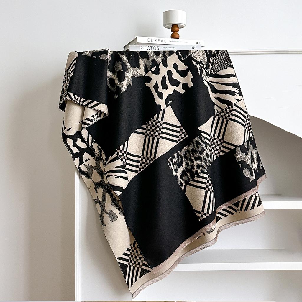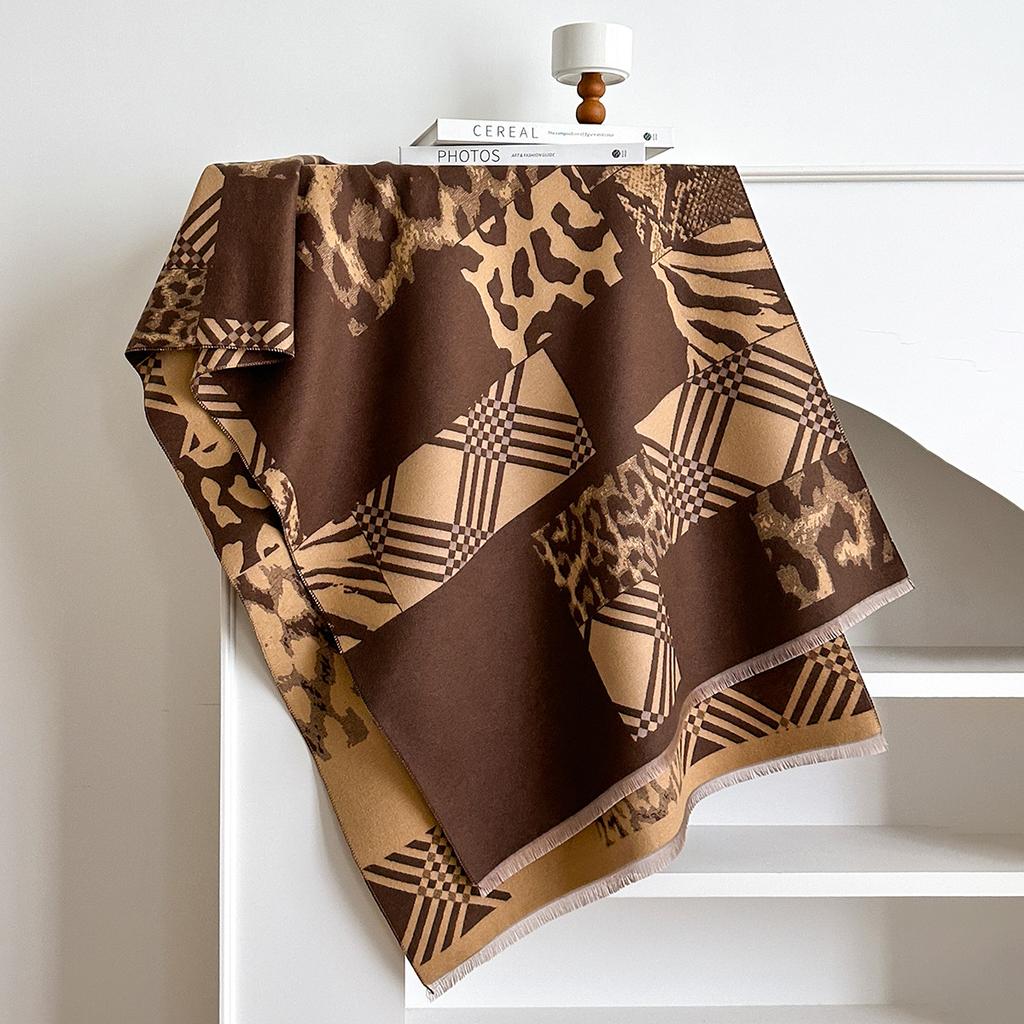 Ветер Осень и Зима Клетчатая Вставка Леопардовый Принт Шаль Темперамент Имитация Кашемира Шарф Женский Двусторонний Принт Верхний Шарф