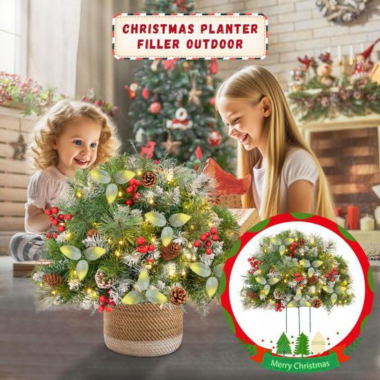 Искусственный рождественский наполнитель для урны с подсветкой, на батарейках, предварительно освещенные рождественские сосны со светодиодными огнями и треногой-колышком, праздничный наполнитель для кашпо для крыльца, двора