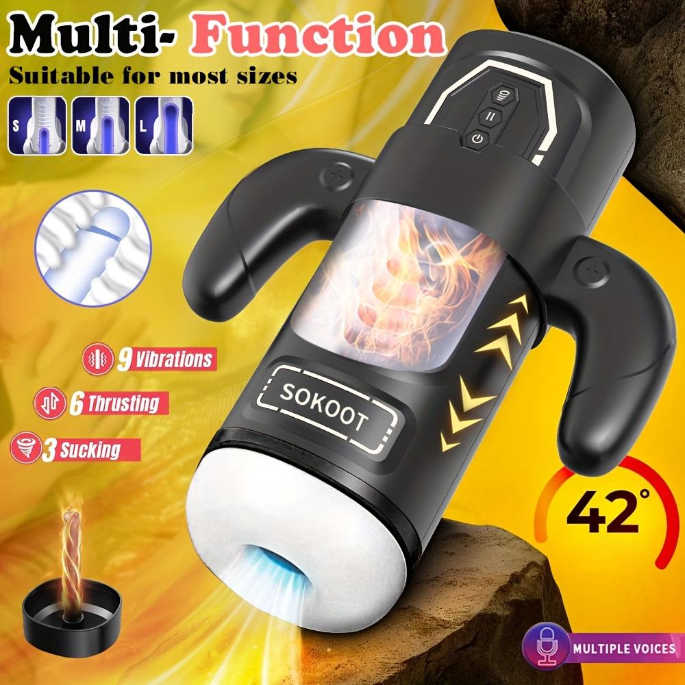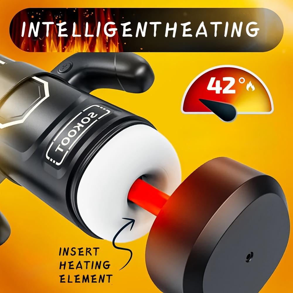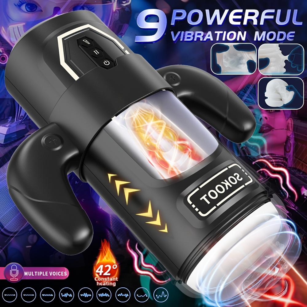 Мужская вибромассажная чашка – 9 режимов вибрации/6 режимов толчков/3 режима всасывания+подогрев, авто-всасывание, перезаряжаемая, силиконовая, легко чистится, одноразовые насадки, игрушка для удовольствия