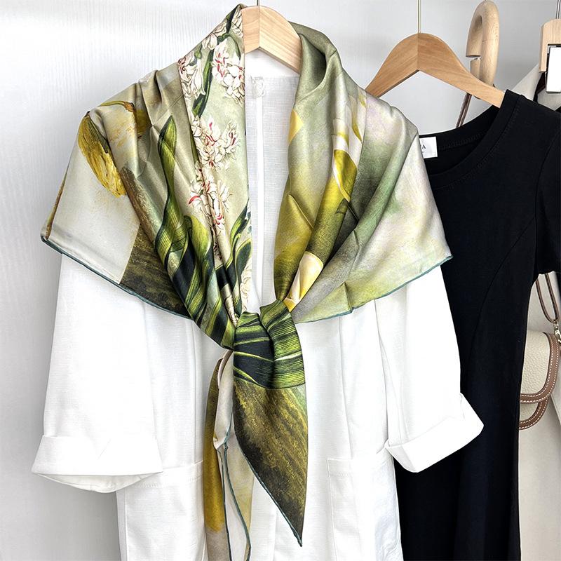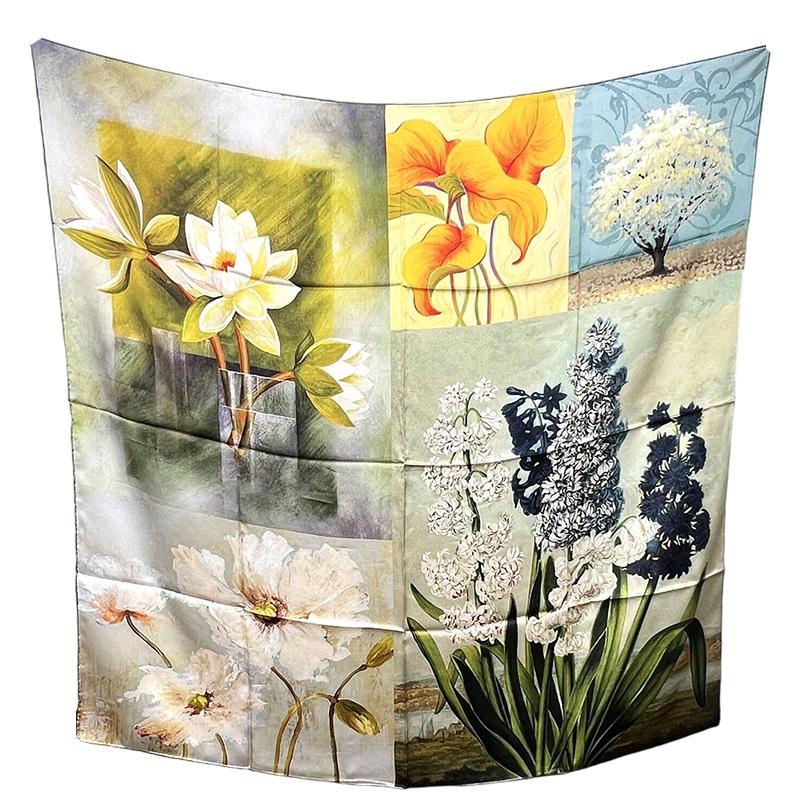 Элегантный темперамент Свежий растительный шелковый шарф-шаль Шелковый шарф Женский квадратный шарф Шелковый Женский Тутовый шелк Шелковый шарф-шаль