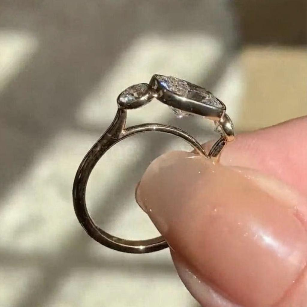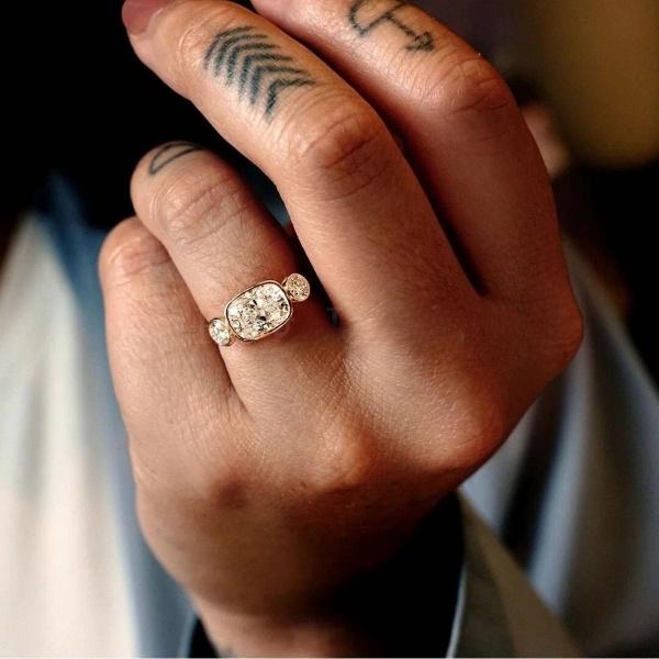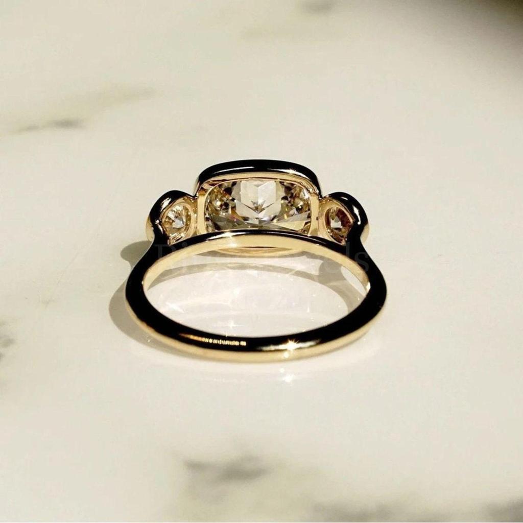 Женское кольцо с тремя камнями огранки «кушон» – Позолоченная шинка с центральным камнем огранки «кушон» и круглыми боковыми камнями, Элегантное ювелирное украшение в стиле помолвочного кольца, подарок для неё