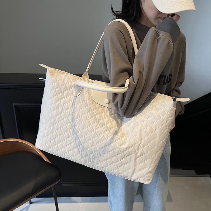 Женская дорожная сумка большой вместимости с ромбовидным узором для повседневных поездок, простая и универсальная спортивная сумка для фитнеса