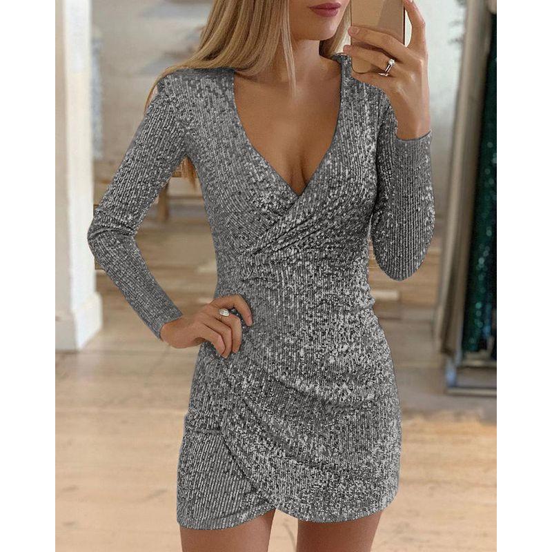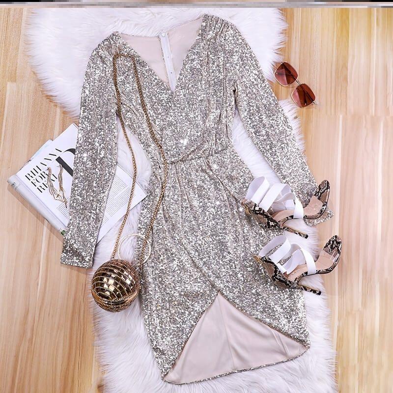 Long Sleeves Sequin V Neck Dress Sexy Party Dress Dress Sequin Party Dress Women