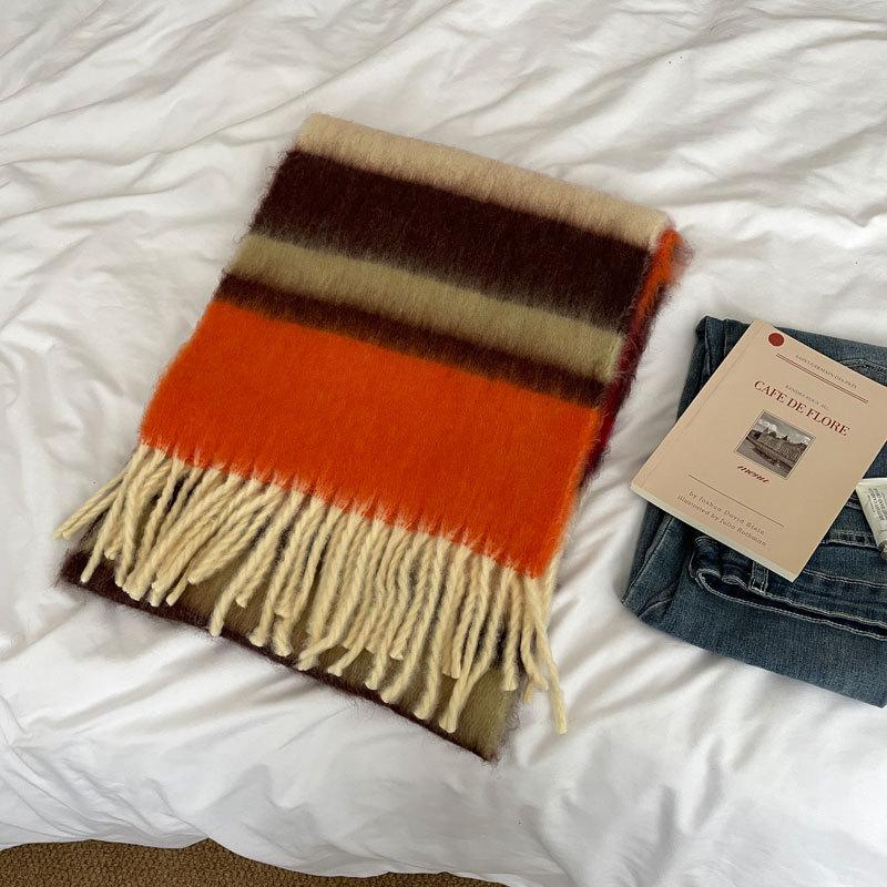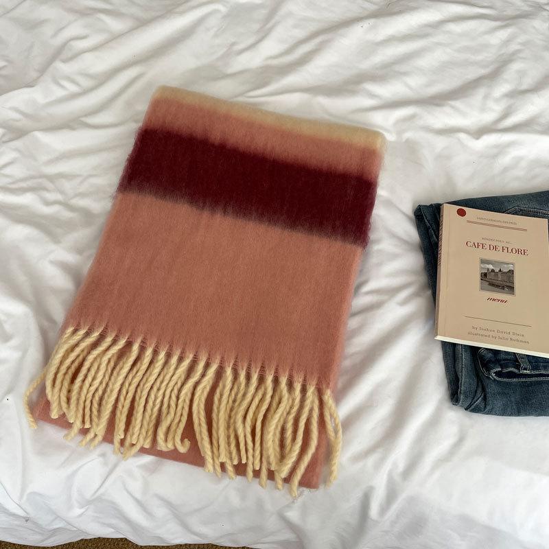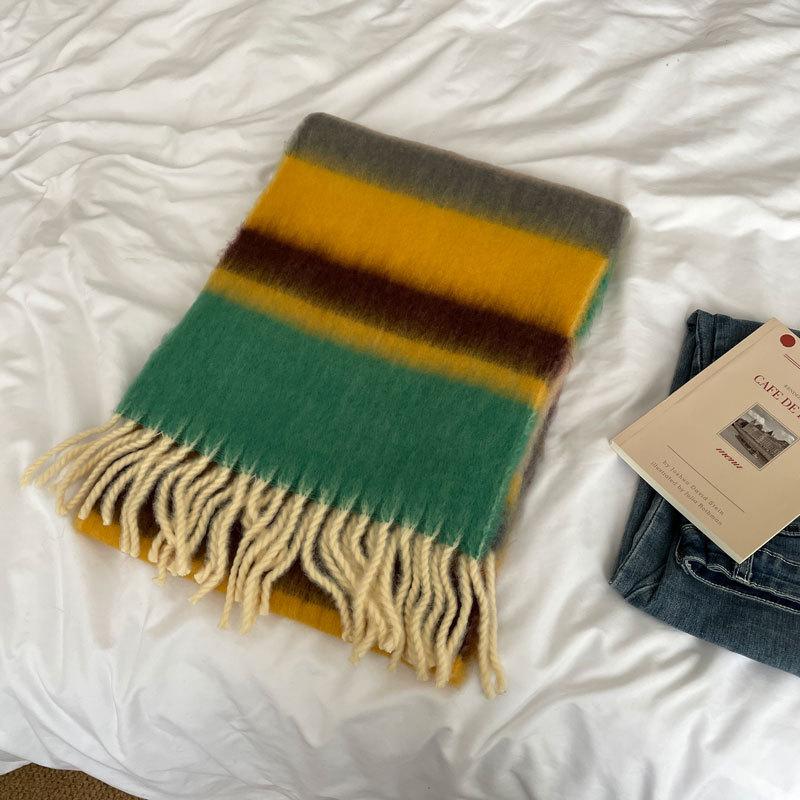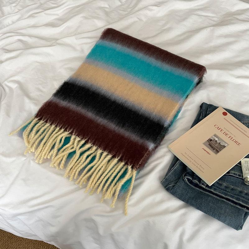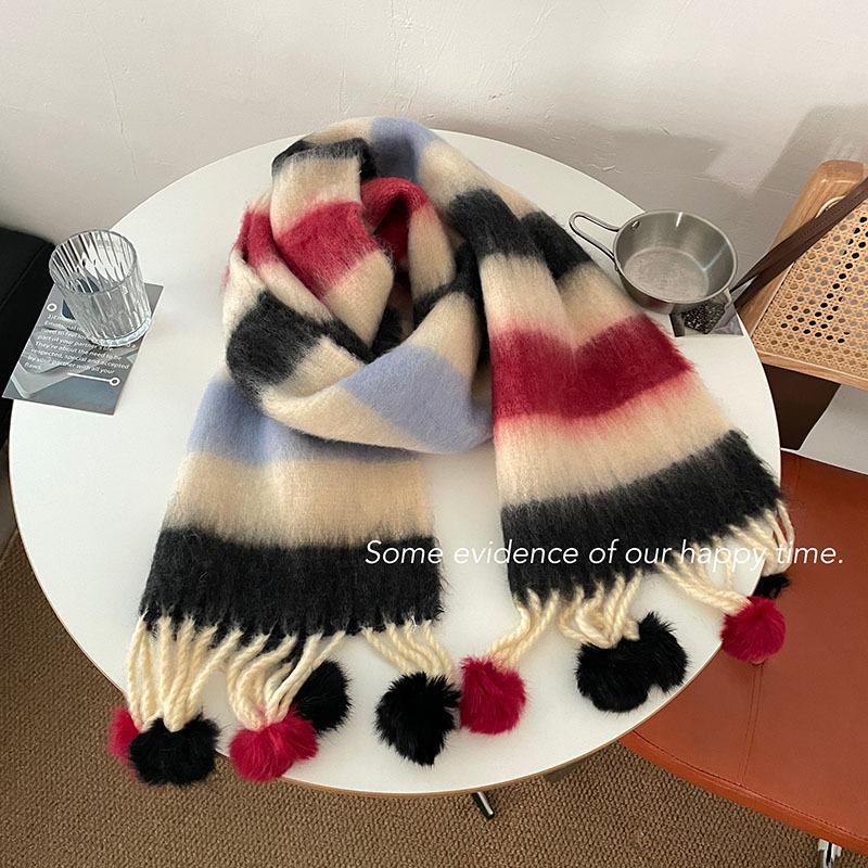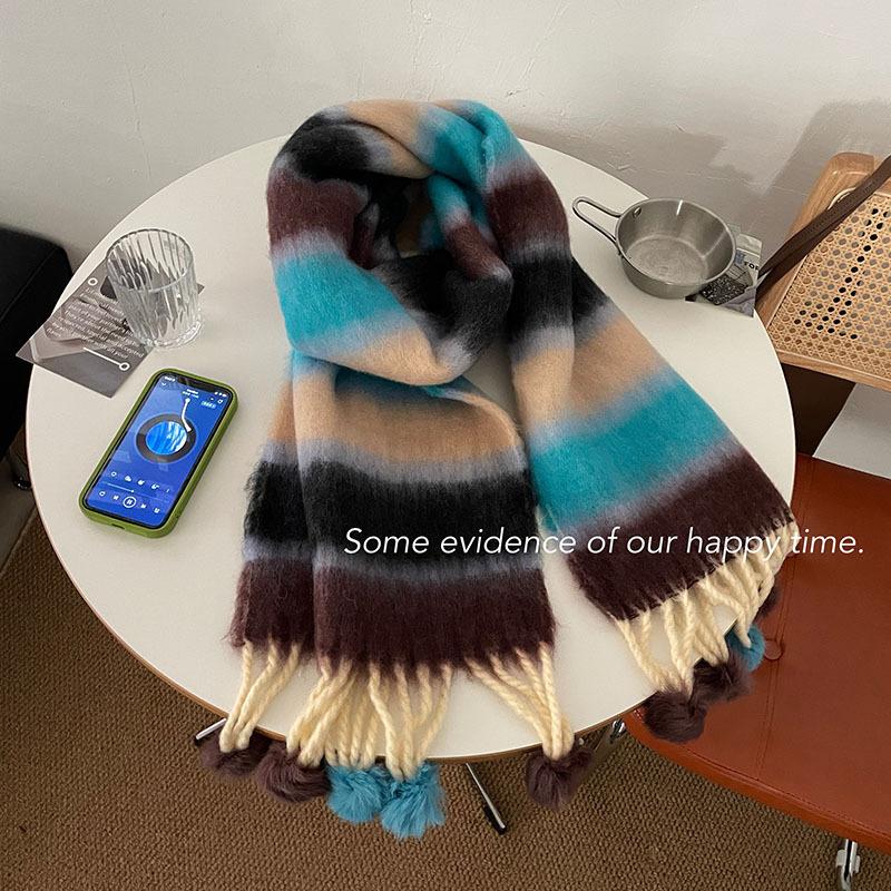 Радужный полосатый шарф Женский премиальный универсальный шарф с кисточками и помпонами Теплый шарф Рождественская атмосфера