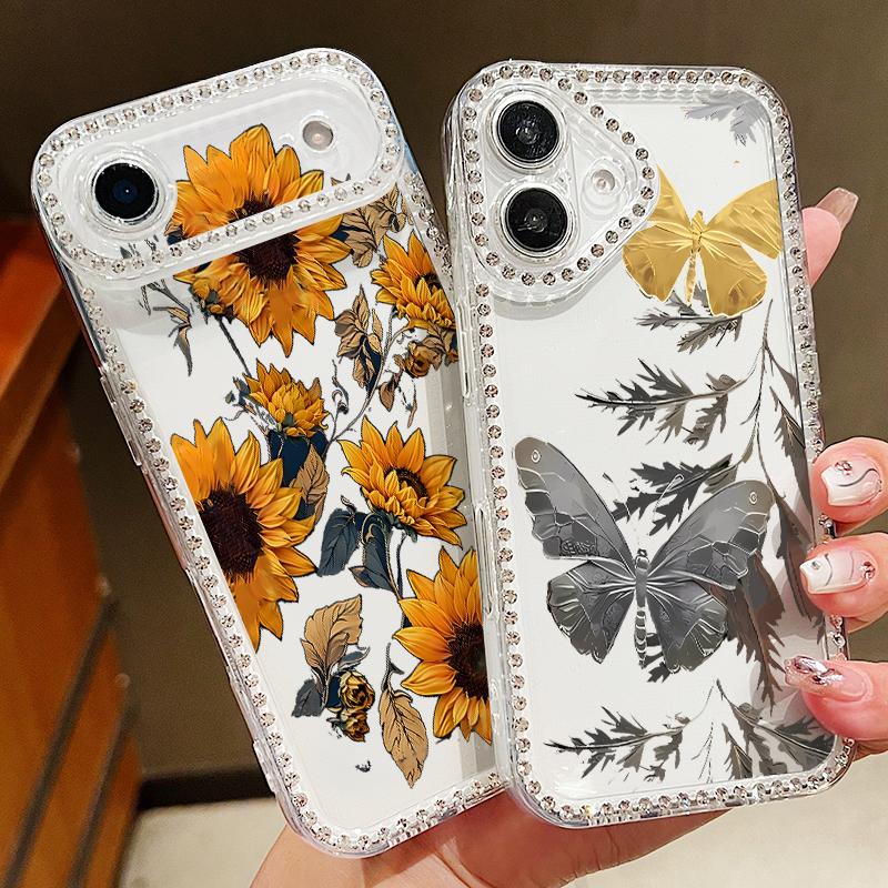 Creative Butterfly Pattern Phone Case For iPhone 17 Air 16e 16 14 15 13 17 Pro Max 15 16 Plus 17 Shockproof Bling Diamond Soft TPU Case Cover