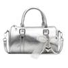 Шикарная ПУ Сумка-бочонок для ношения в руке/на плече/через плечо с дополнительным аксессуаром в виде ленты: Изготовлено из ПУ с глянцевым покрытием, с дополнительным нежным ленточным аксессуаром, который добавляет нотку сладости и элегантности.. Предназначен для ношения в руке, на одном плече или через плечо. Идеально для добавления стильного штриха к повседневным прогулкам, вечеринкам или неформальным мероприятиям.