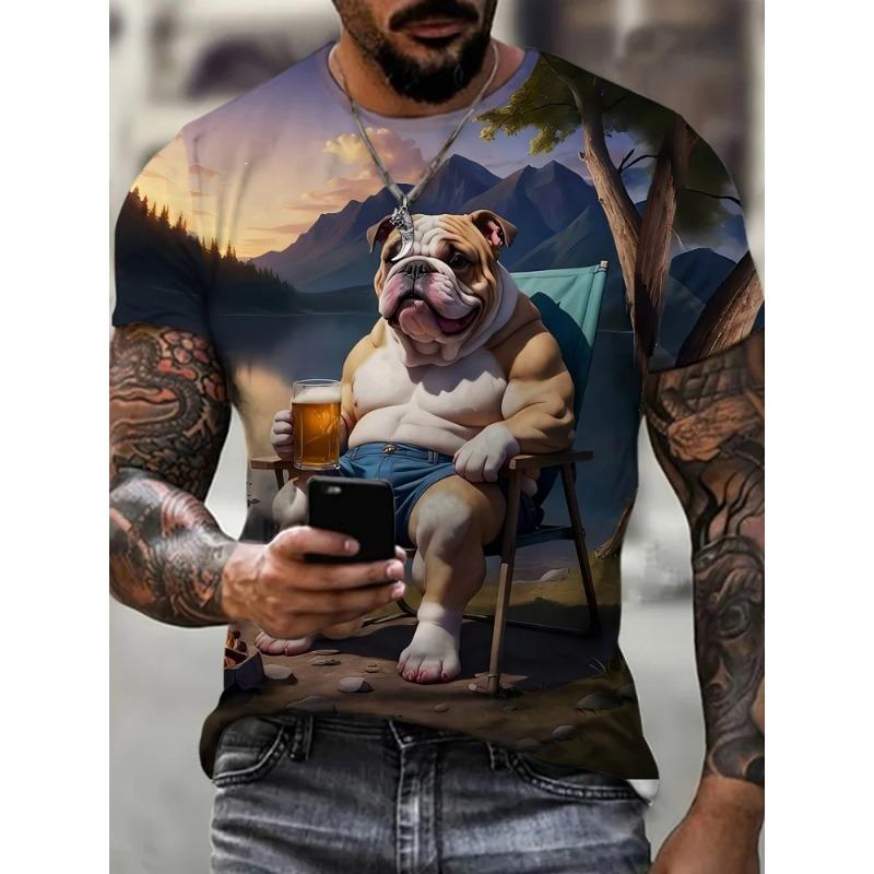 3D Футболки с принтом собаки Летние Уличные Повседневные С круглым вырезом и коротким рукавом Топы Харадзюку Смешной узор Мужские футболки