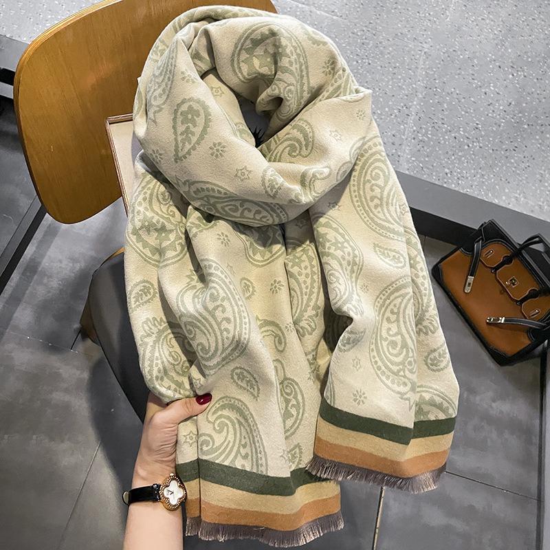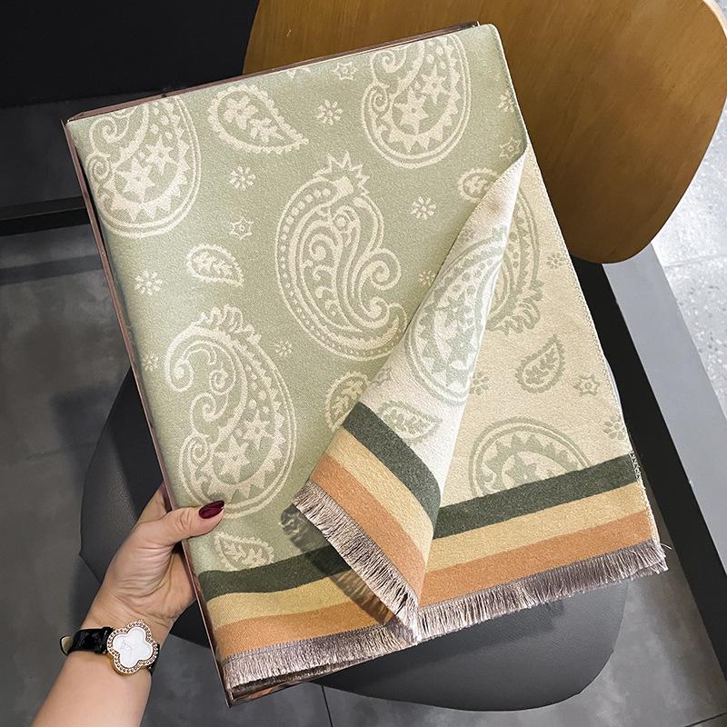 Зимний новый высококачественный зеленый шарф-шаль из имитации кашемира кешью двойного назначения двухсторонний теплый студенческий шарф