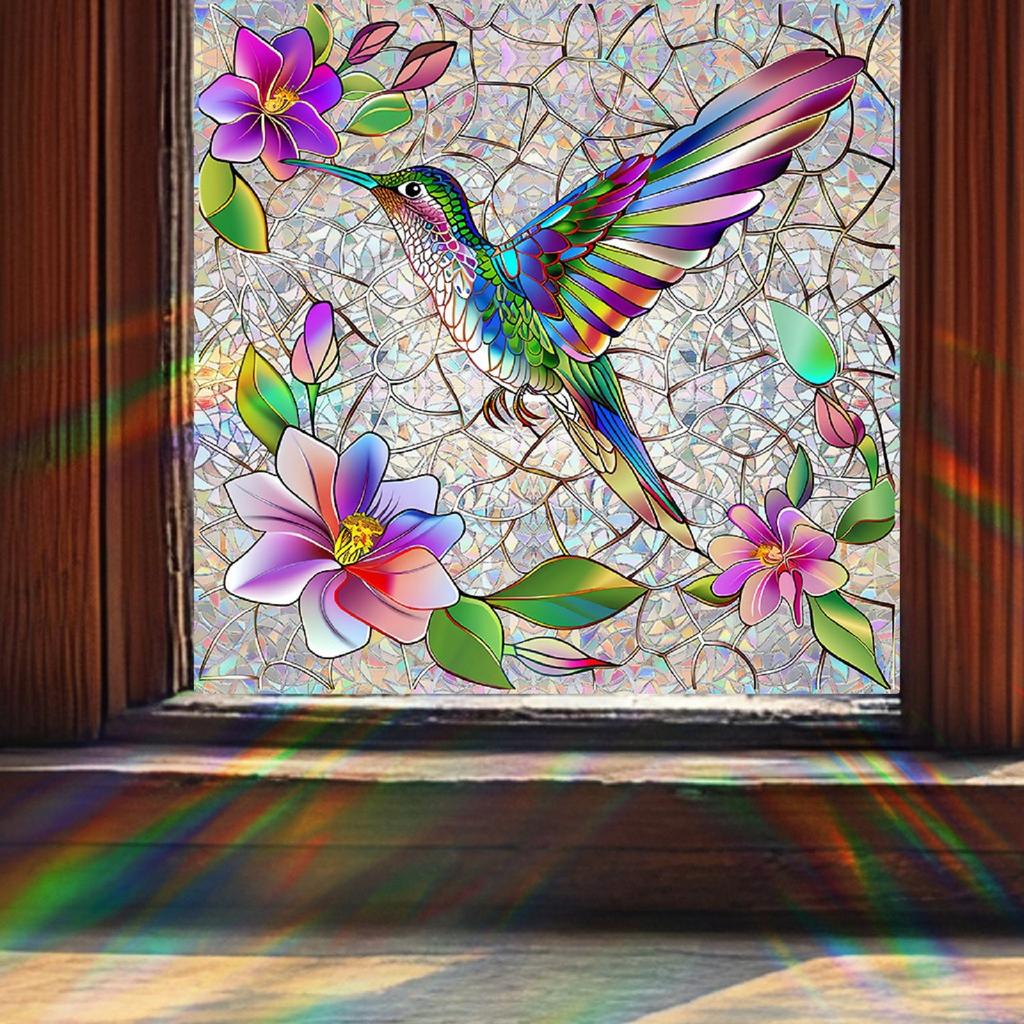 Наклейка Цветное стекло Колибри и цветы, Художественная, Великолепные наклейки на стену для дома