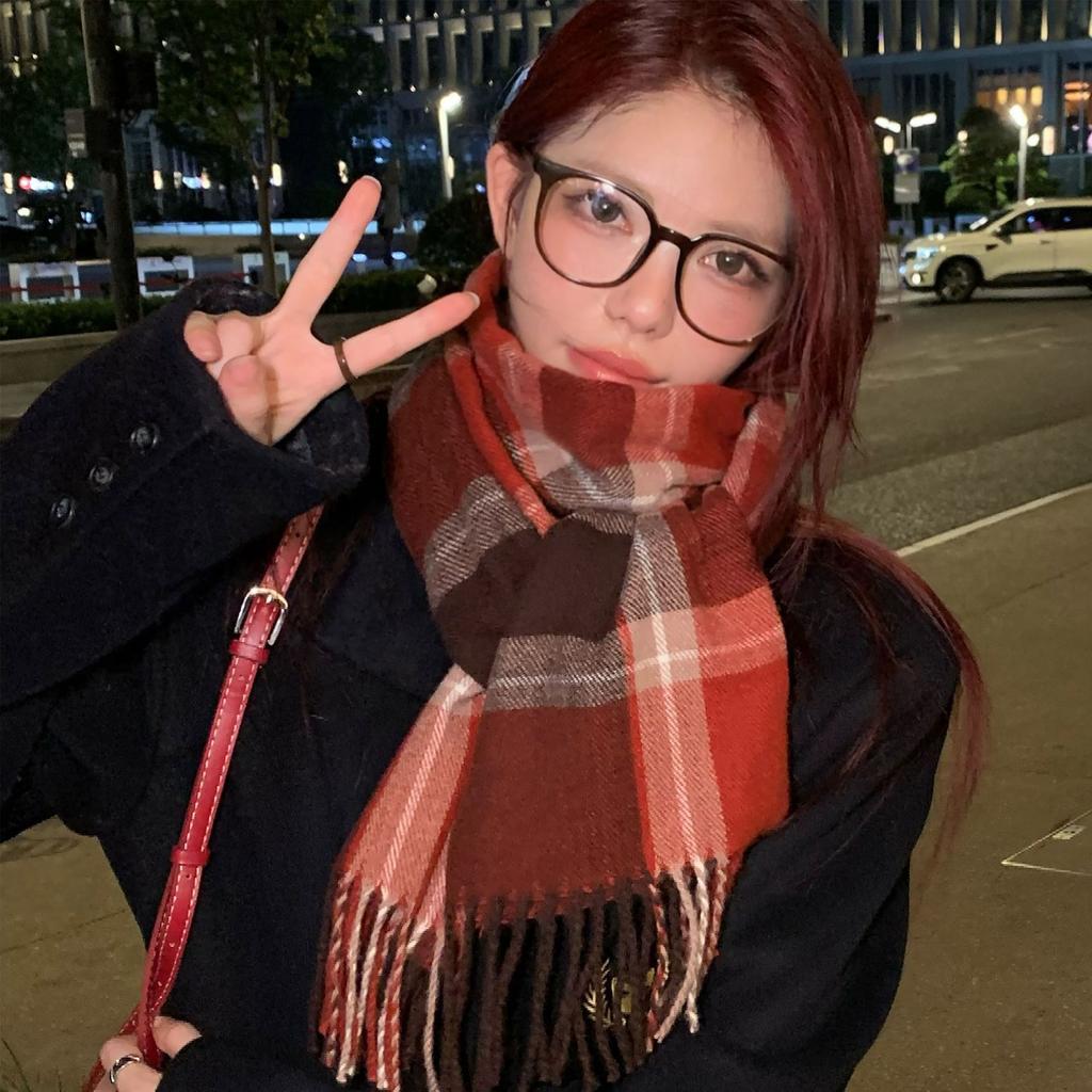 Осень и зима красный новый клетчатый шарф женский атмосфера чувство высокого класса имитация кашемира зимний теплый шарф шаль