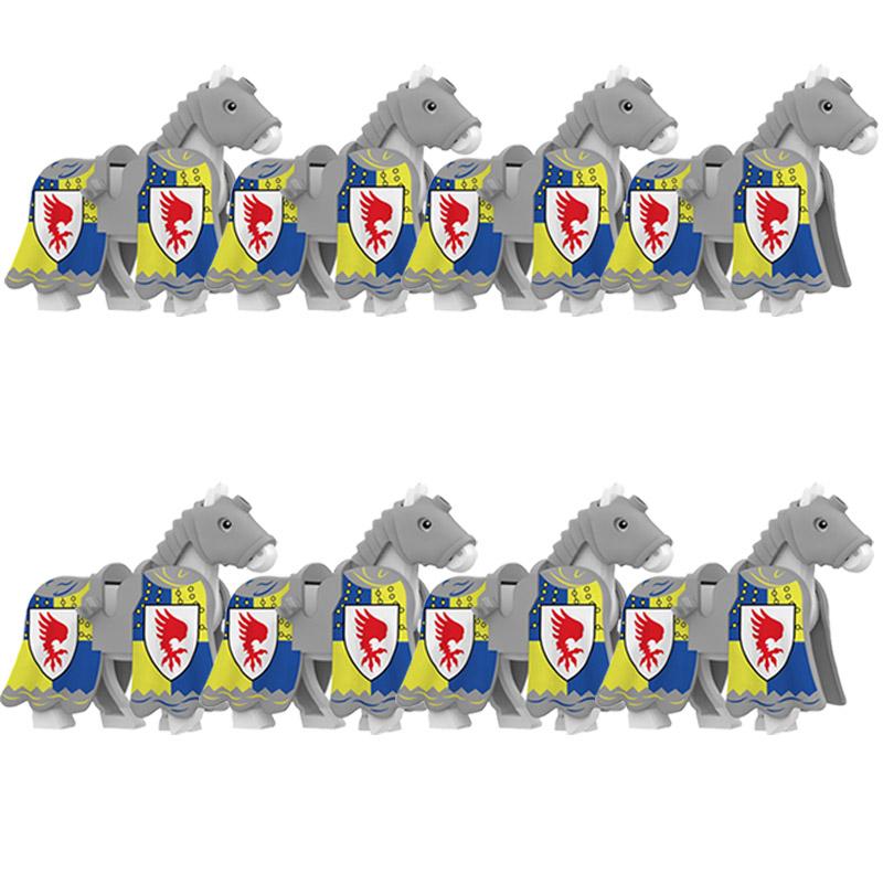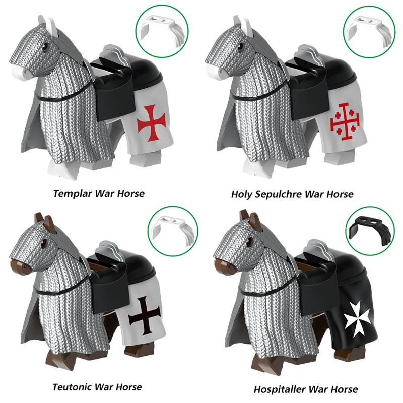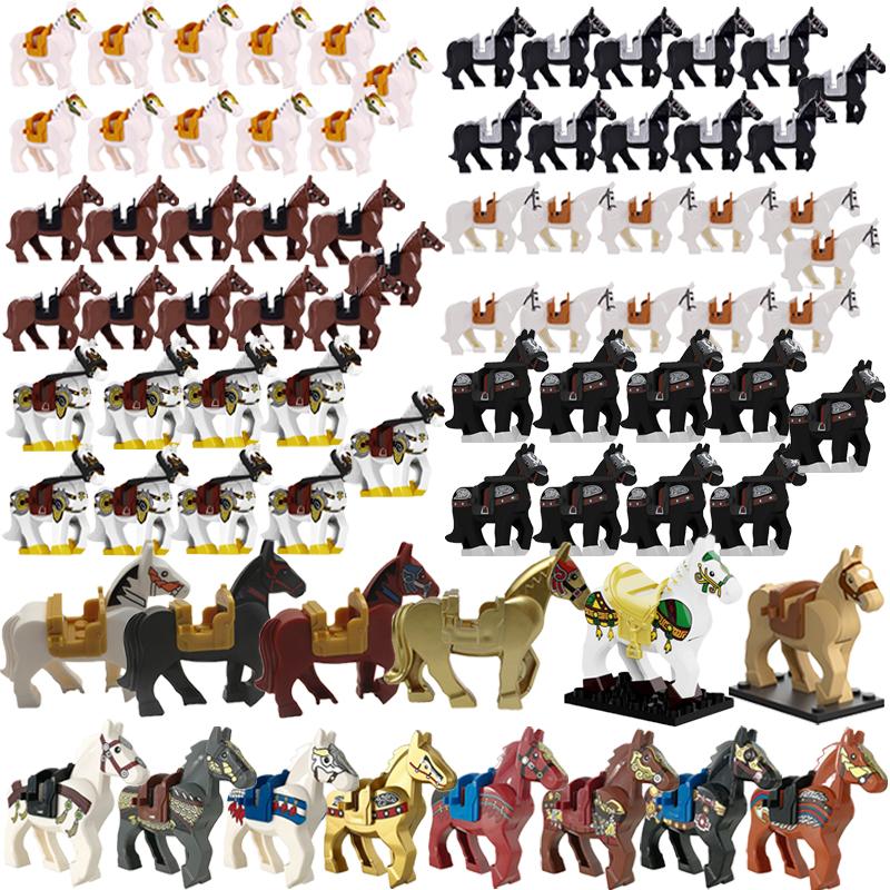 MOC Средневековые военные строительные блоки кавалерийский полк рыцарь лошадь животные аксессуары набор мини-кирпичи купить товары мальчик игрушка подарок