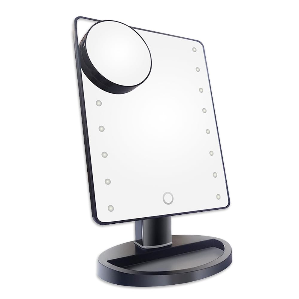 Nicheez Светодиодное Зеркало для Макияжа Актрисы Питание от USB Портативное Настольное Увеличительное Зеркало Зеркало, Зеркало, Питание от Батареек, 2 способа питания, Подставка, (черный)
