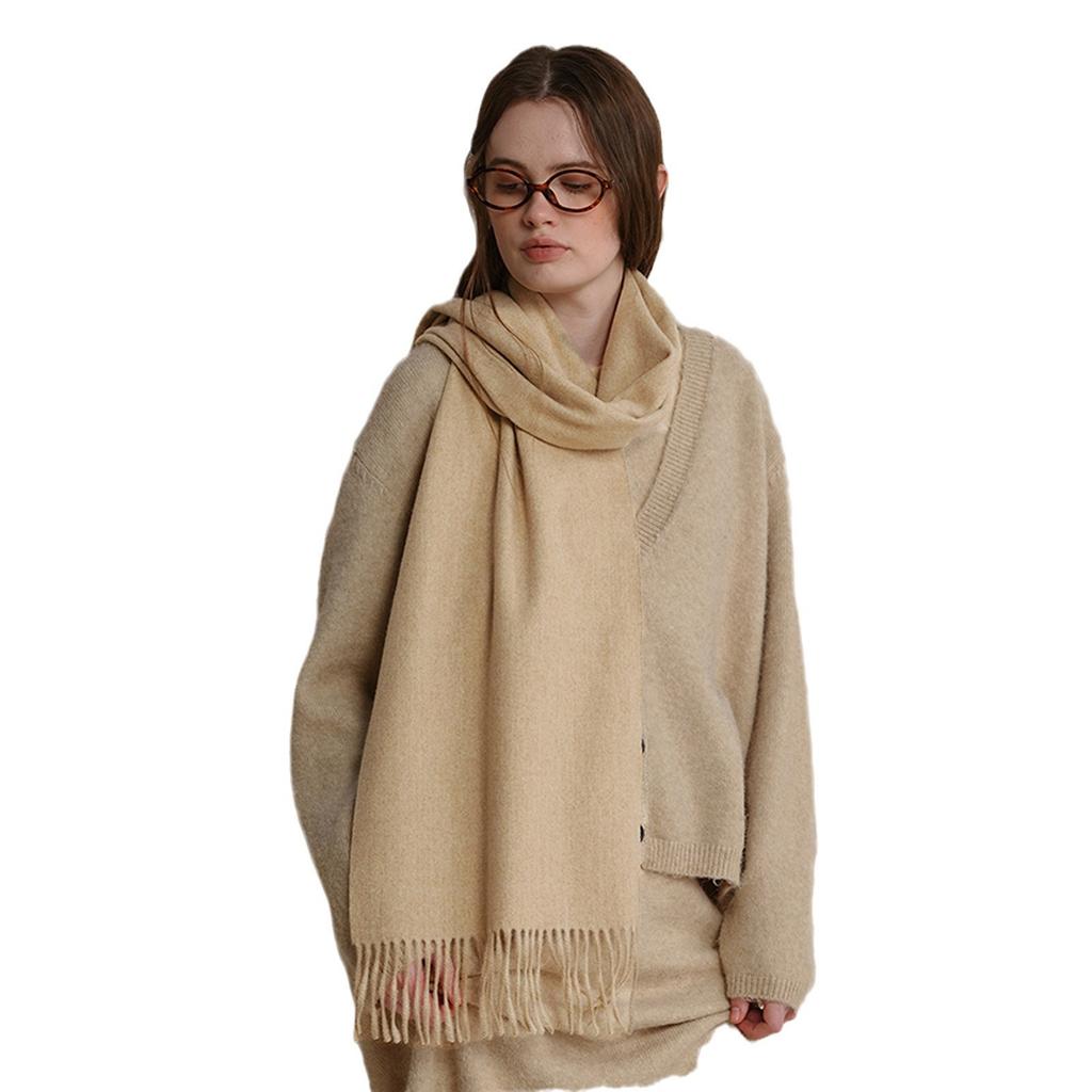 Шерстяной шарф, унисекс классический высококачественный B с теплым однотонным шарфом с бахромой, женская шаль осень-зима