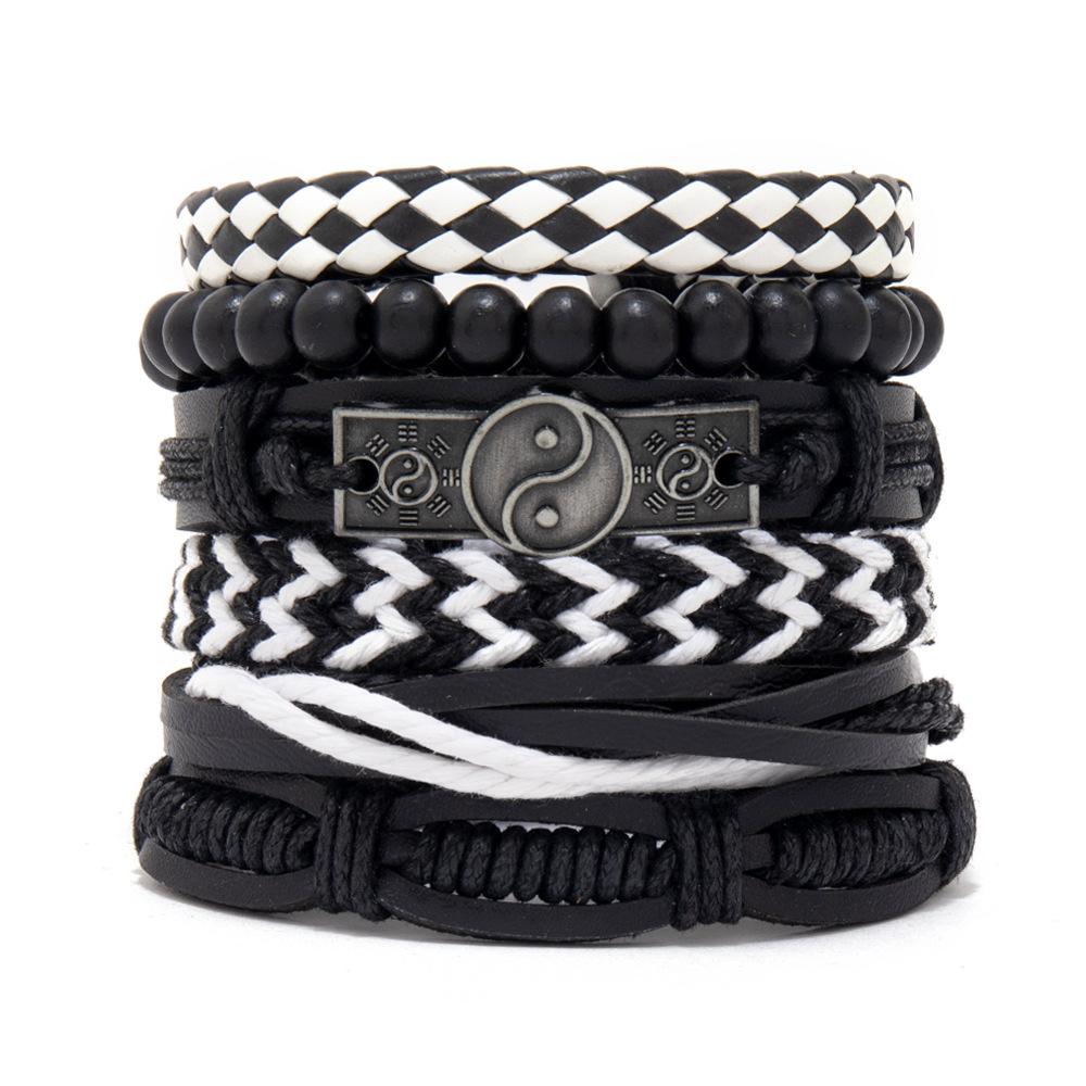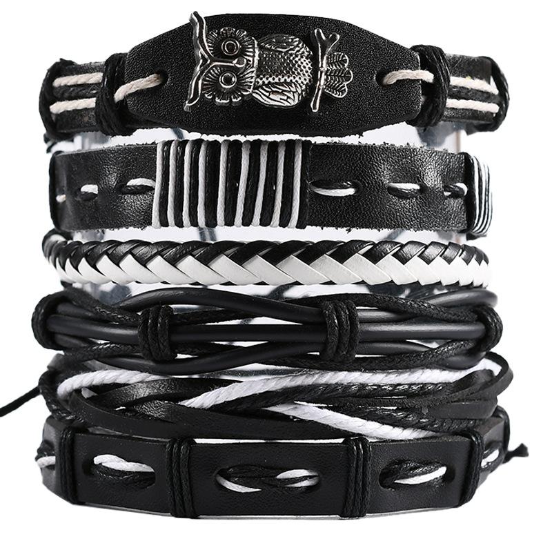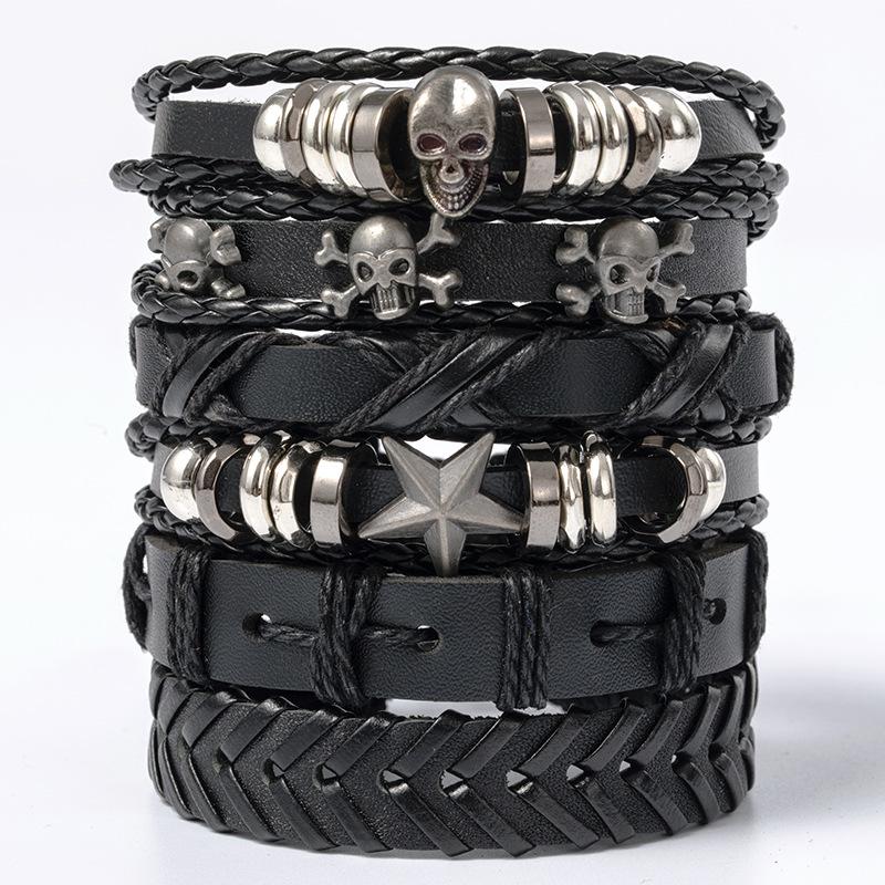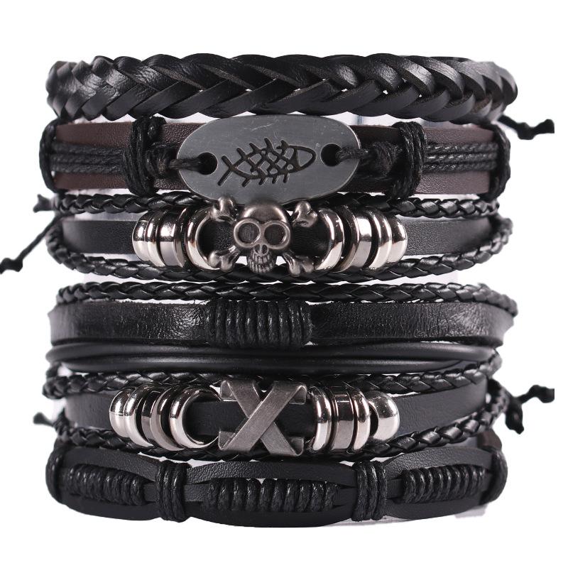 Винтажный мужской кожаный браслет, модный, плетеный вручную, многослойная нить, черный панк-рок, ювелирные изделия, набор аксессуаров