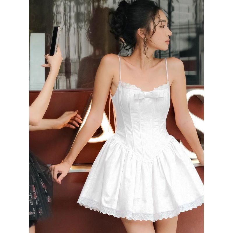 Девушка Динге Сладкое Лето Вьетнамская Ниша Сбежавшая Принцесса Сладкий Бант Кружевной Край Пышное Платье-Слинг