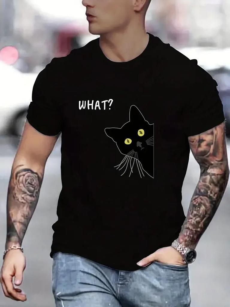 Футболки с принтом черного кота для унисекс, повседневная футболка с коротким рукавом и круглым вырезом, удобная дышащая футболка на все сезоны