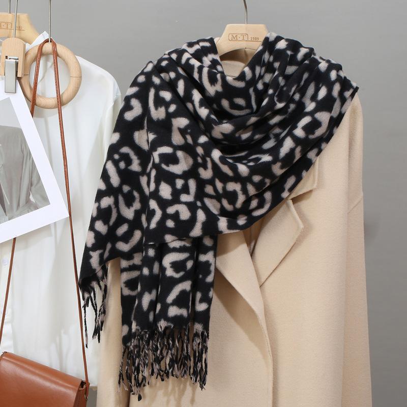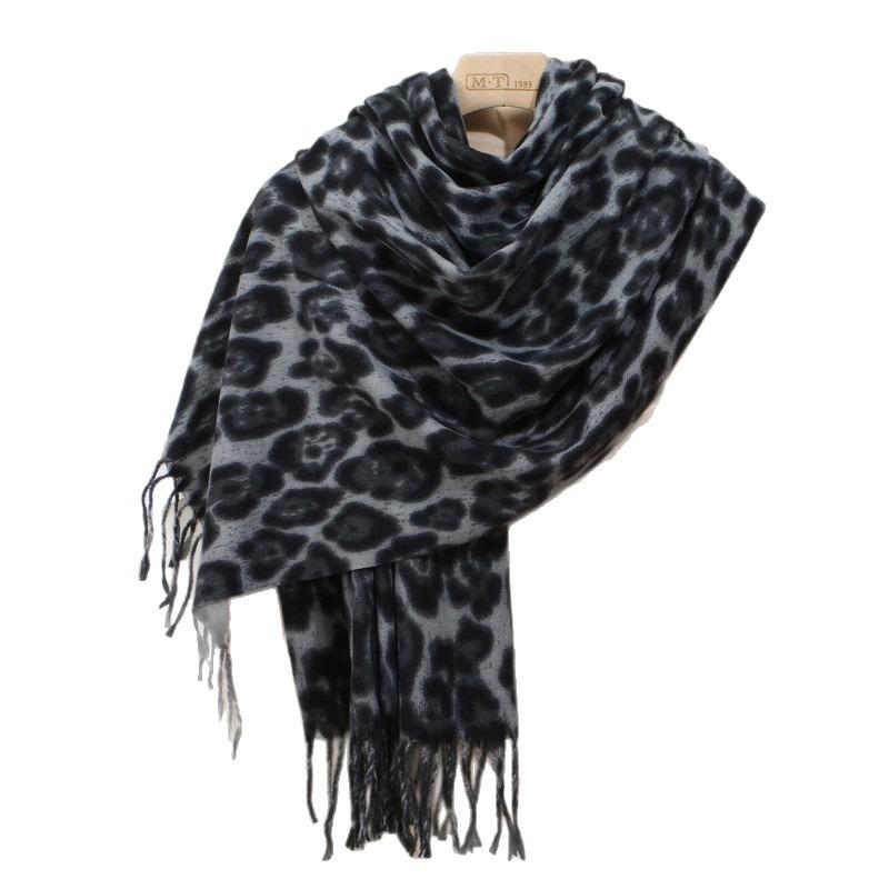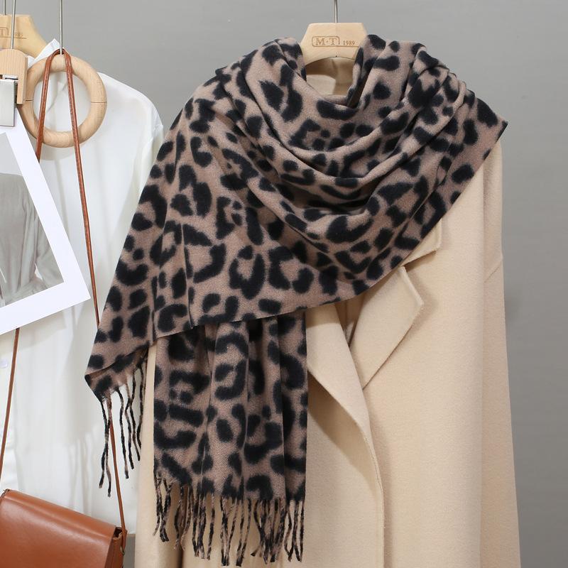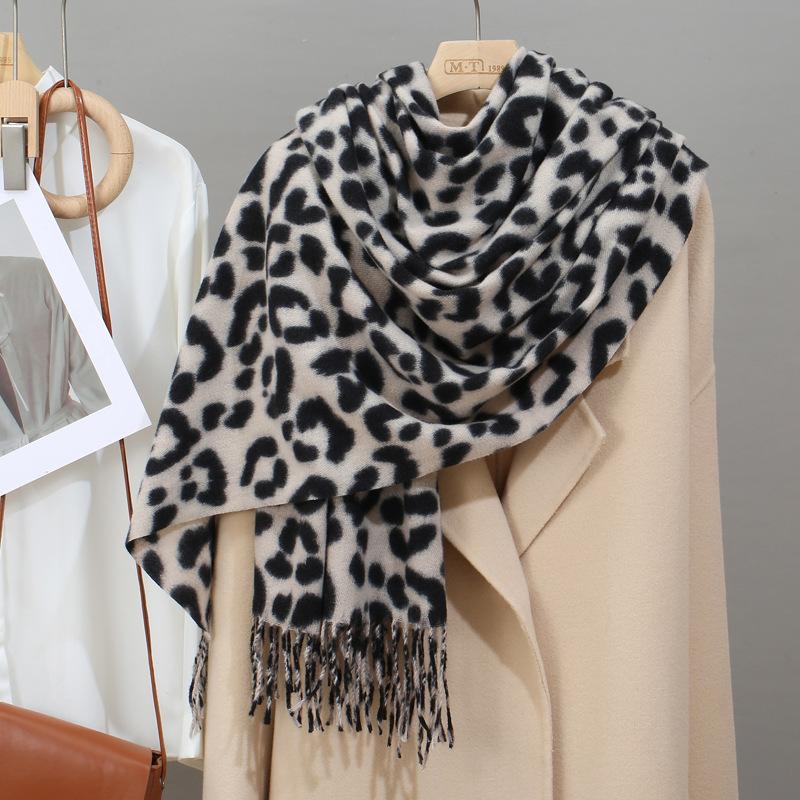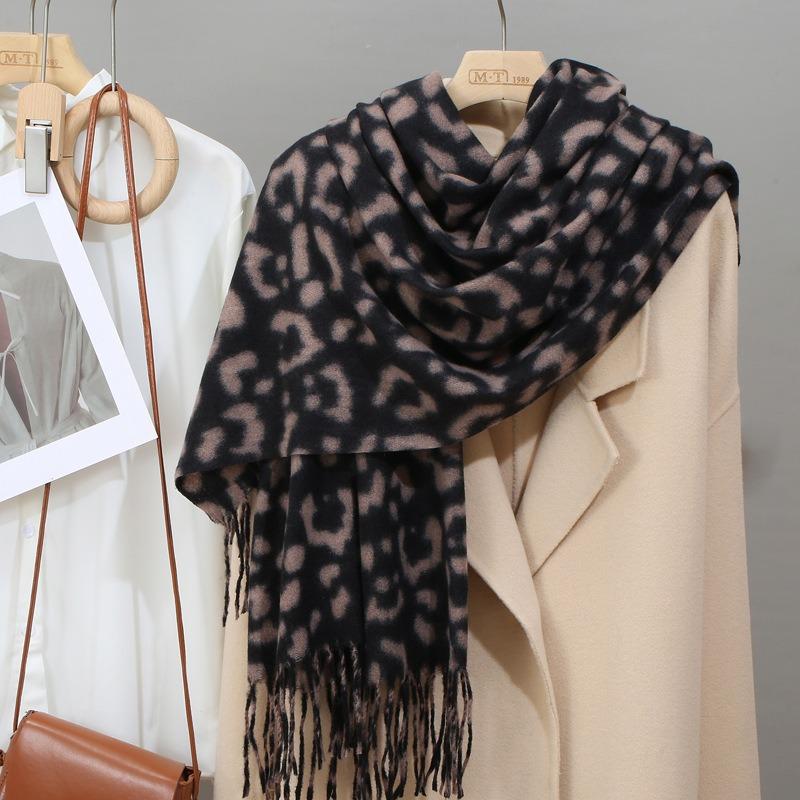 Новый ретро шарф с леопардовым принтом женский осенне-зимний имитация кашемира теплый универсальный шарф-шаль с бахромой атмосферный шарф