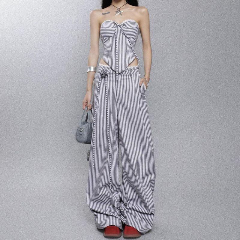 Suit Ins Summer New Arrival Asymmetrical Heart Wrapped Chest Vest Women Loose Casual Trousers Striped Suit Women