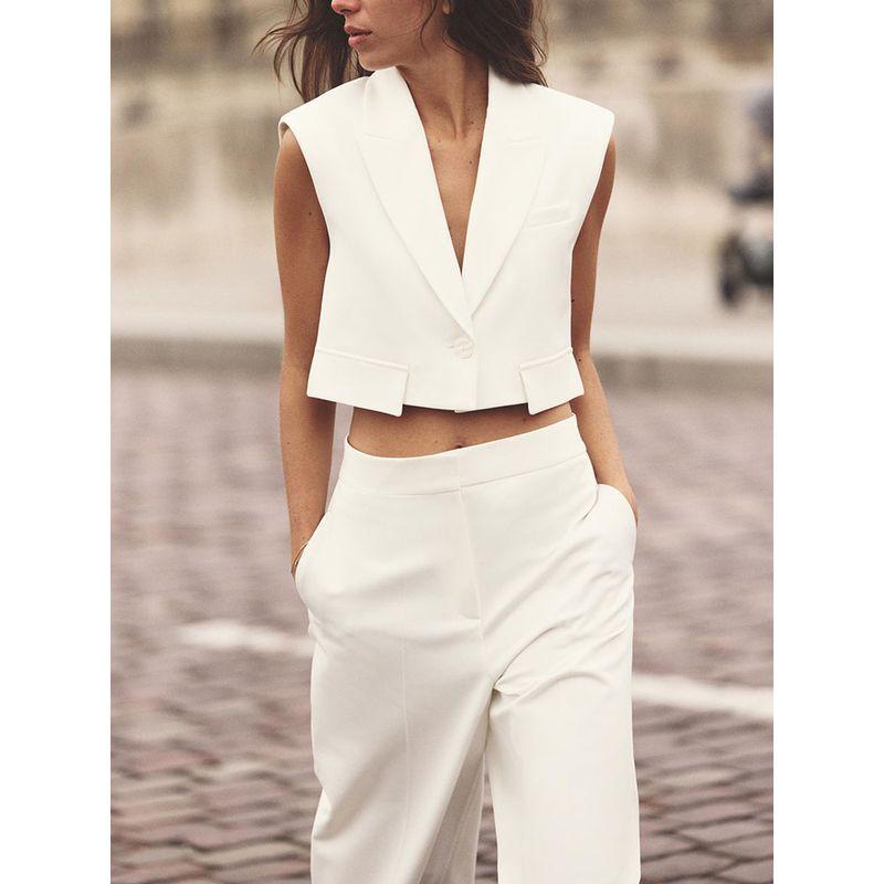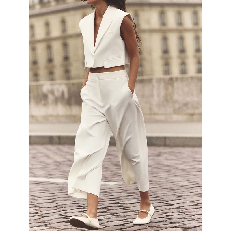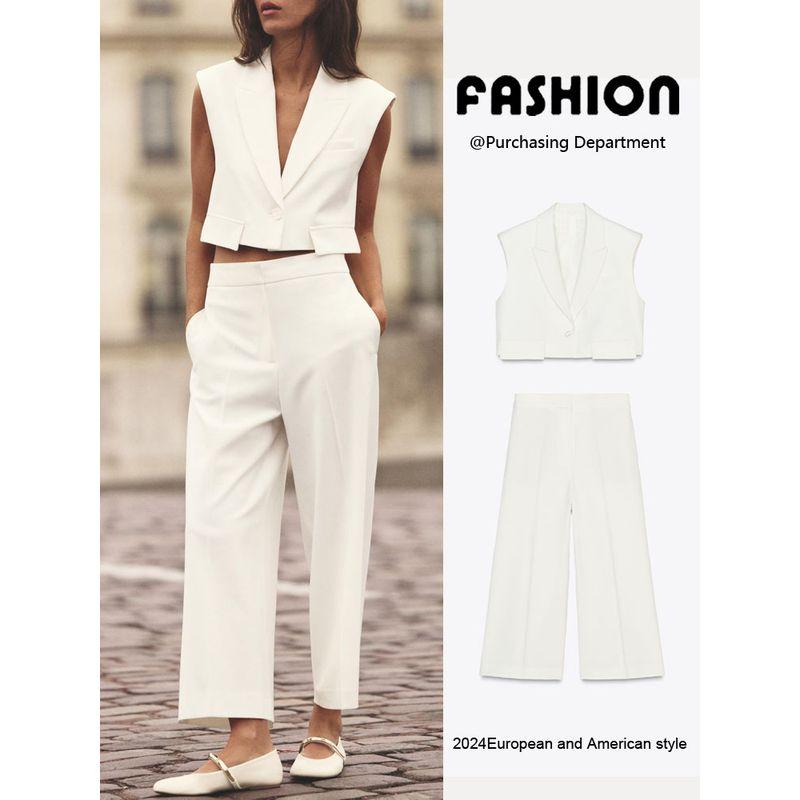 Za2025 Spring New Women clothes Sleeveless Vest Vest 2406539 High Waist Wide Leg Pants 2485539