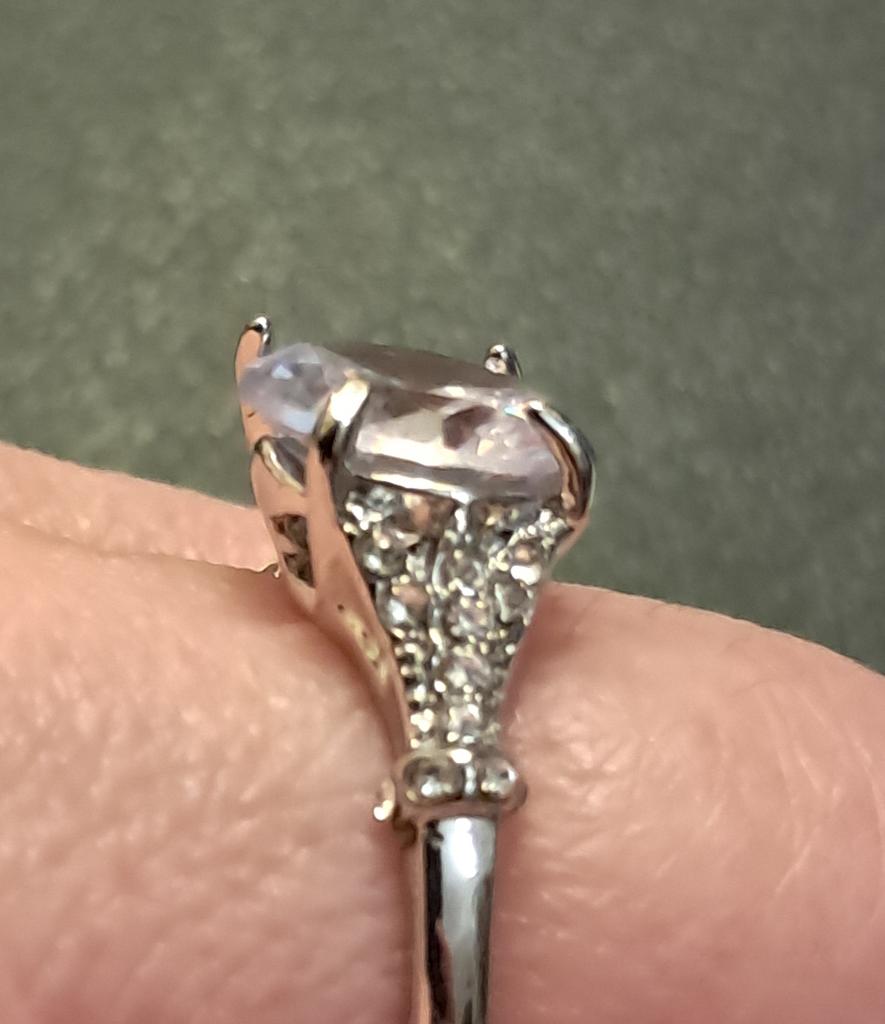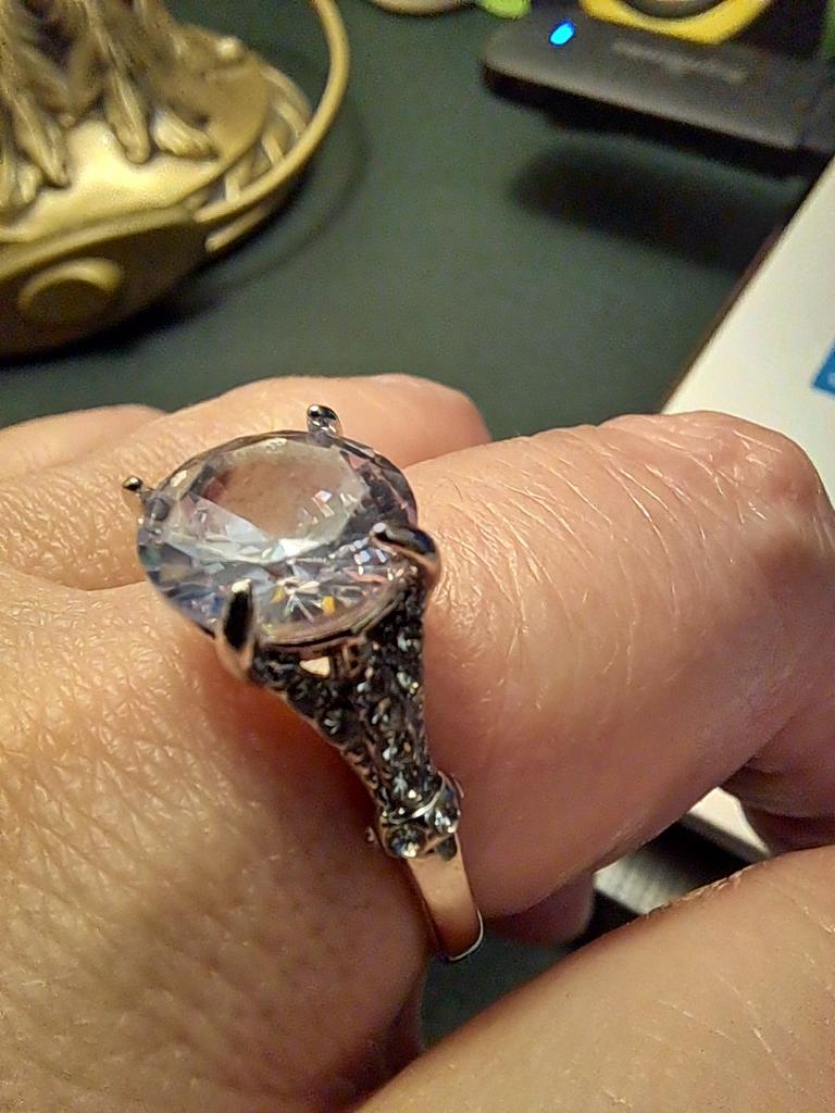 Кольцо красивое,дизайн на высшем уровне.Камень чудо , меняет цвет в зависимости от освещения,то бледно розовый,то белый,но с умопомрачительным блеском.Заказывалая правда другое колечко с муссанитом,но и на это поглядовала,так,что не слишком разочарована и балл не снижаю.Спасибо за доставленную радость !!!