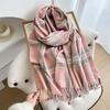 Клетчатый шарф женский зимний полосатый студенческий теплый утолщенный шарф-шаль из искусственного кашемира