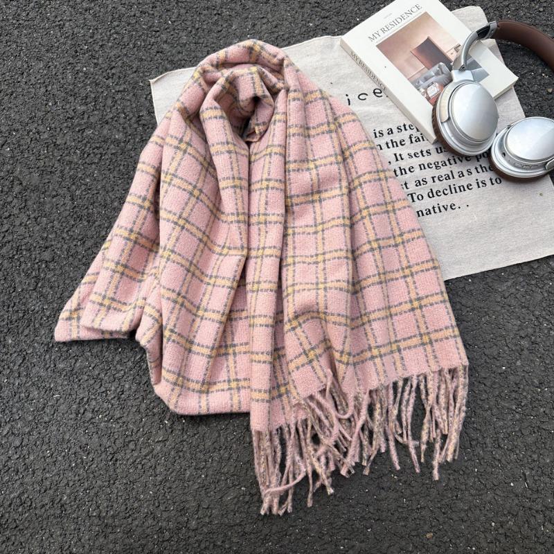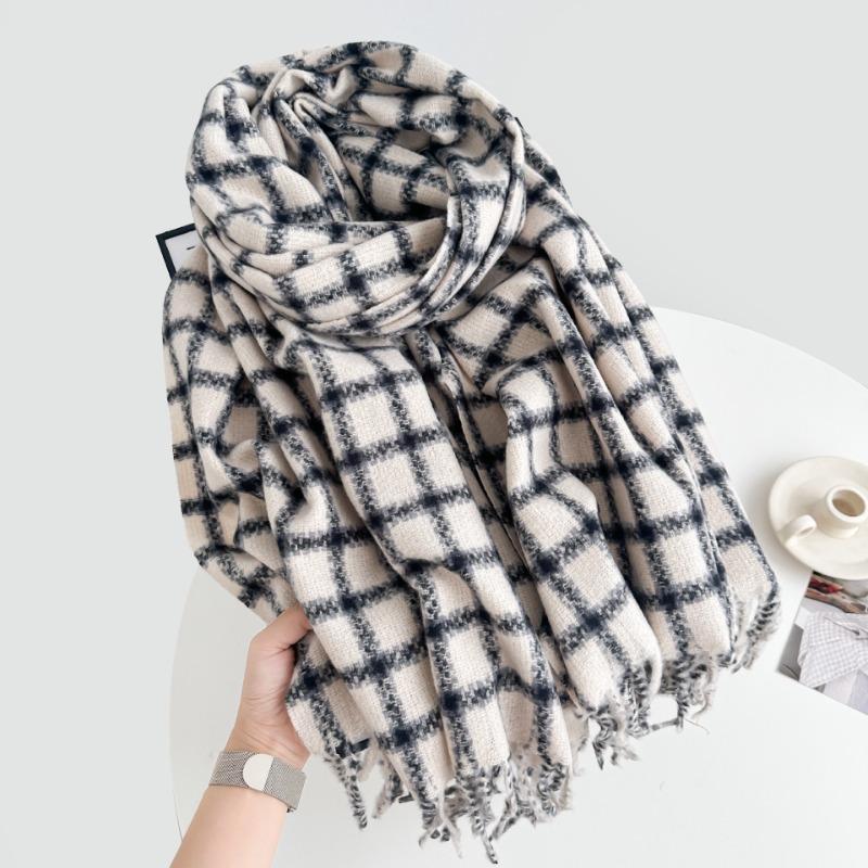 Премиальный клетчатый простой шарф с бахромой женский осенне-зимний теплый платок модный шарф из имитации кашемира