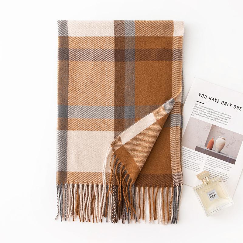 Большой клетчатый шарф из искусственного кашемира, универсальный для осени и зимы, теплый студенческий парный шарф, мужской с изысканным чувством